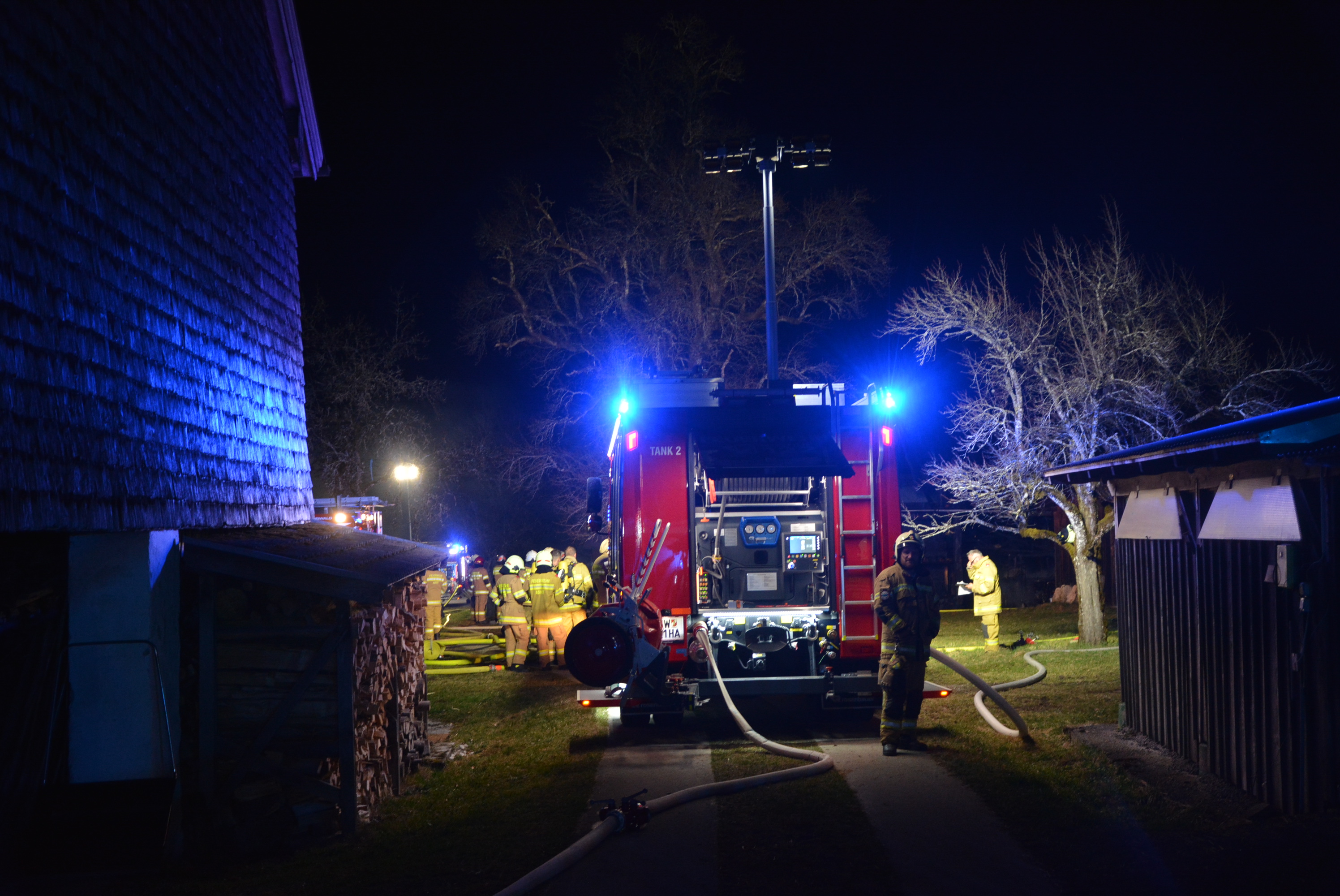 Beim Eintreffen der Einsatzkräfte war eine deutliche Rauchentwicklung erkennbar. Der Atemschutztrupp des Tank 1 (TLFA 3000) führte die Löscharbeiten mittels HD-Rohr durch. Letzte Glutnester konnten mit der Wärmebildkamera lokalisiert und abgelöscht werden.