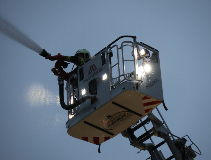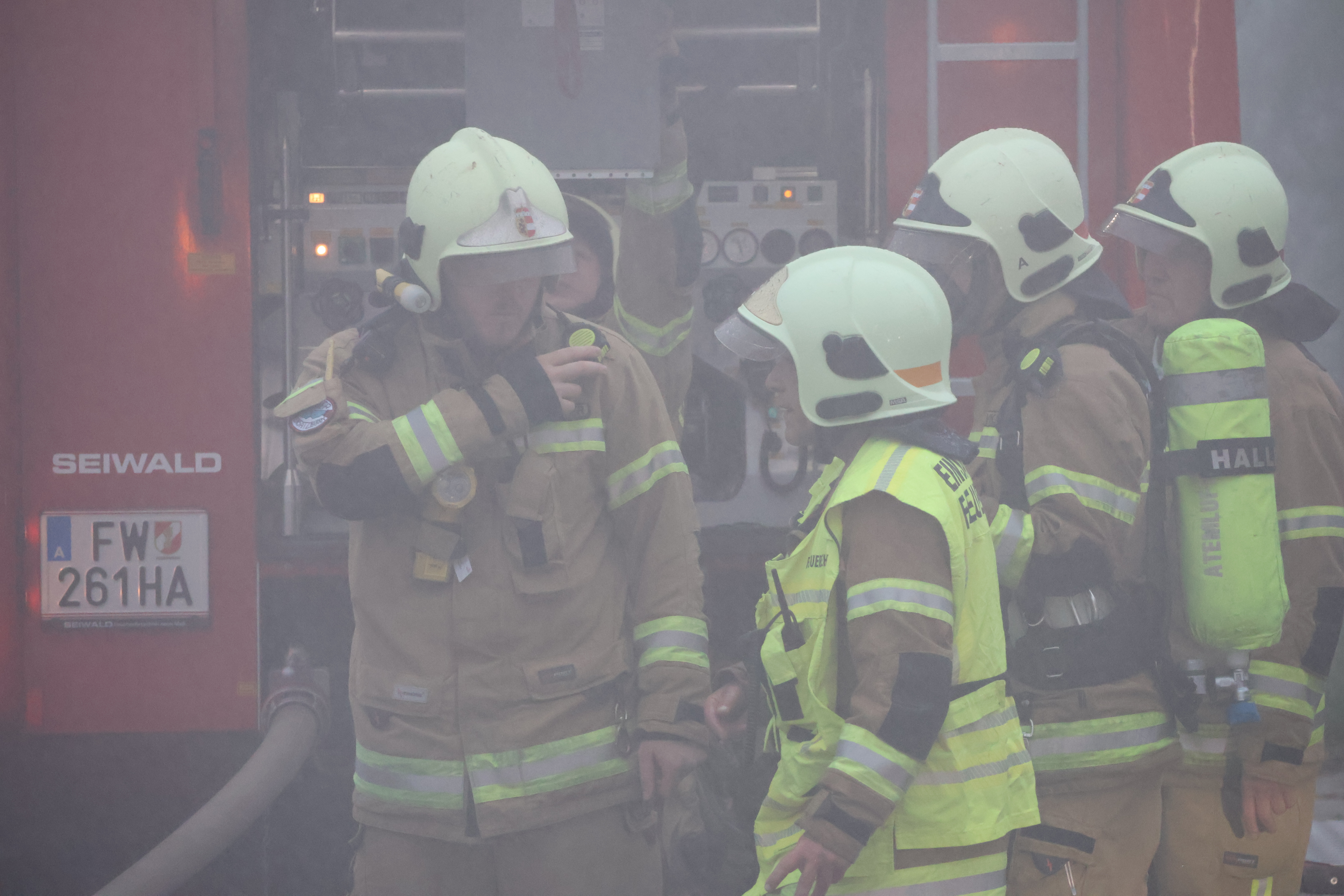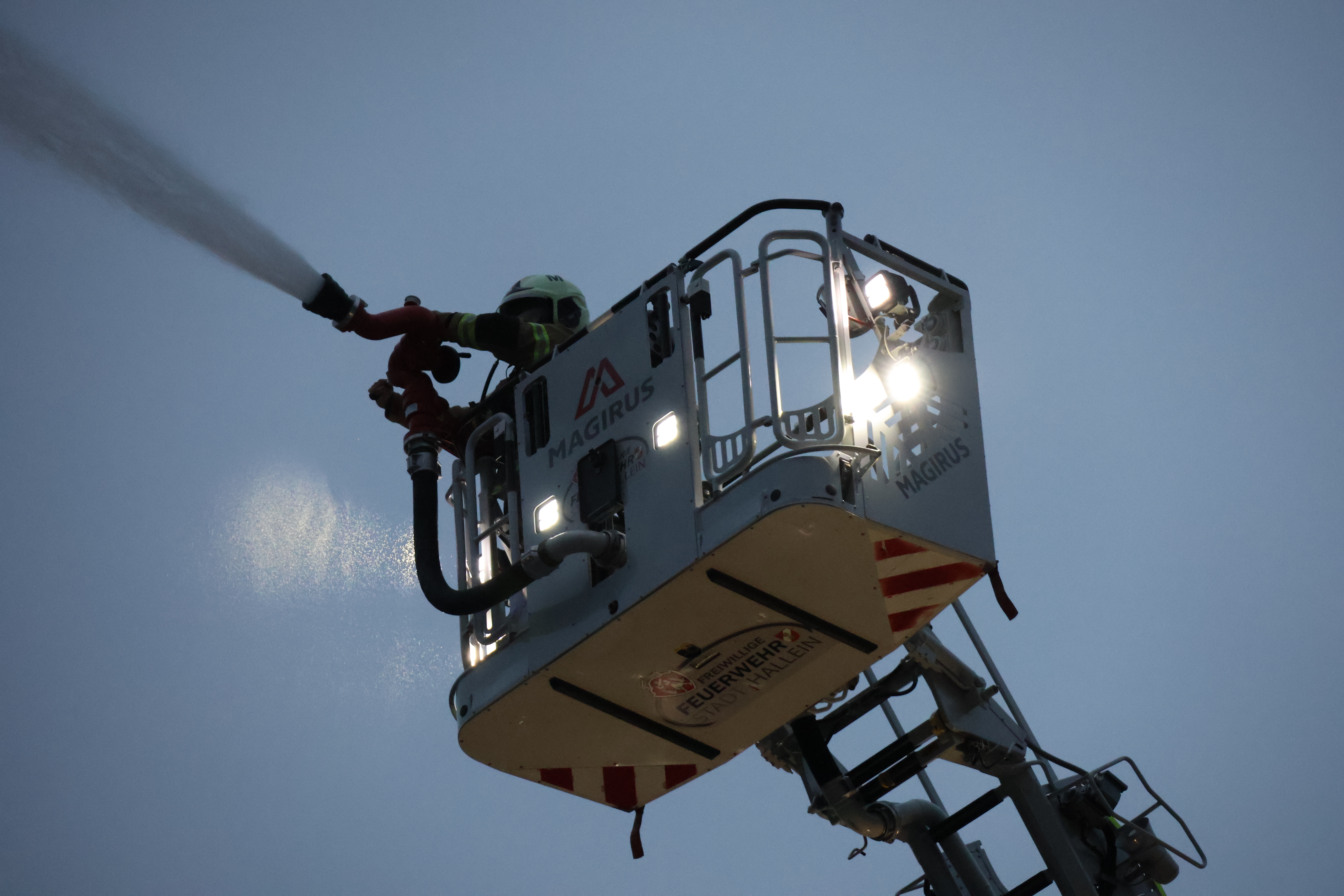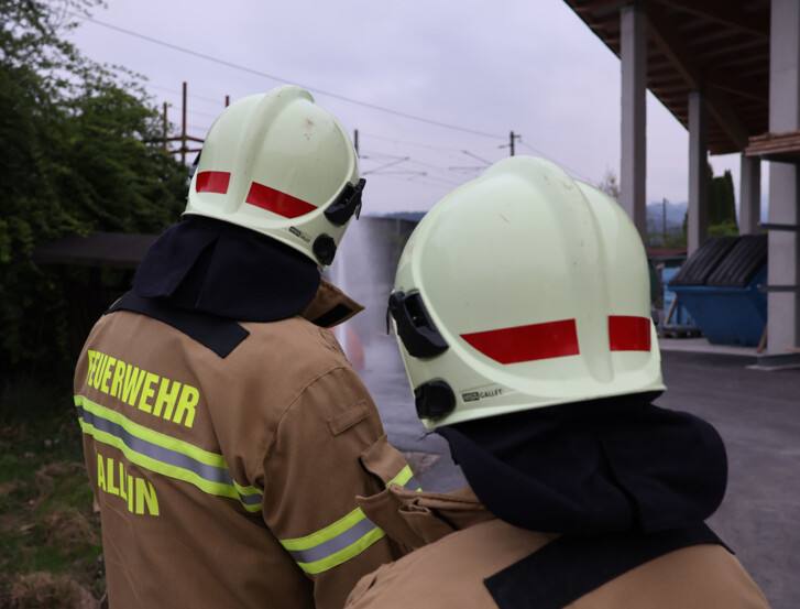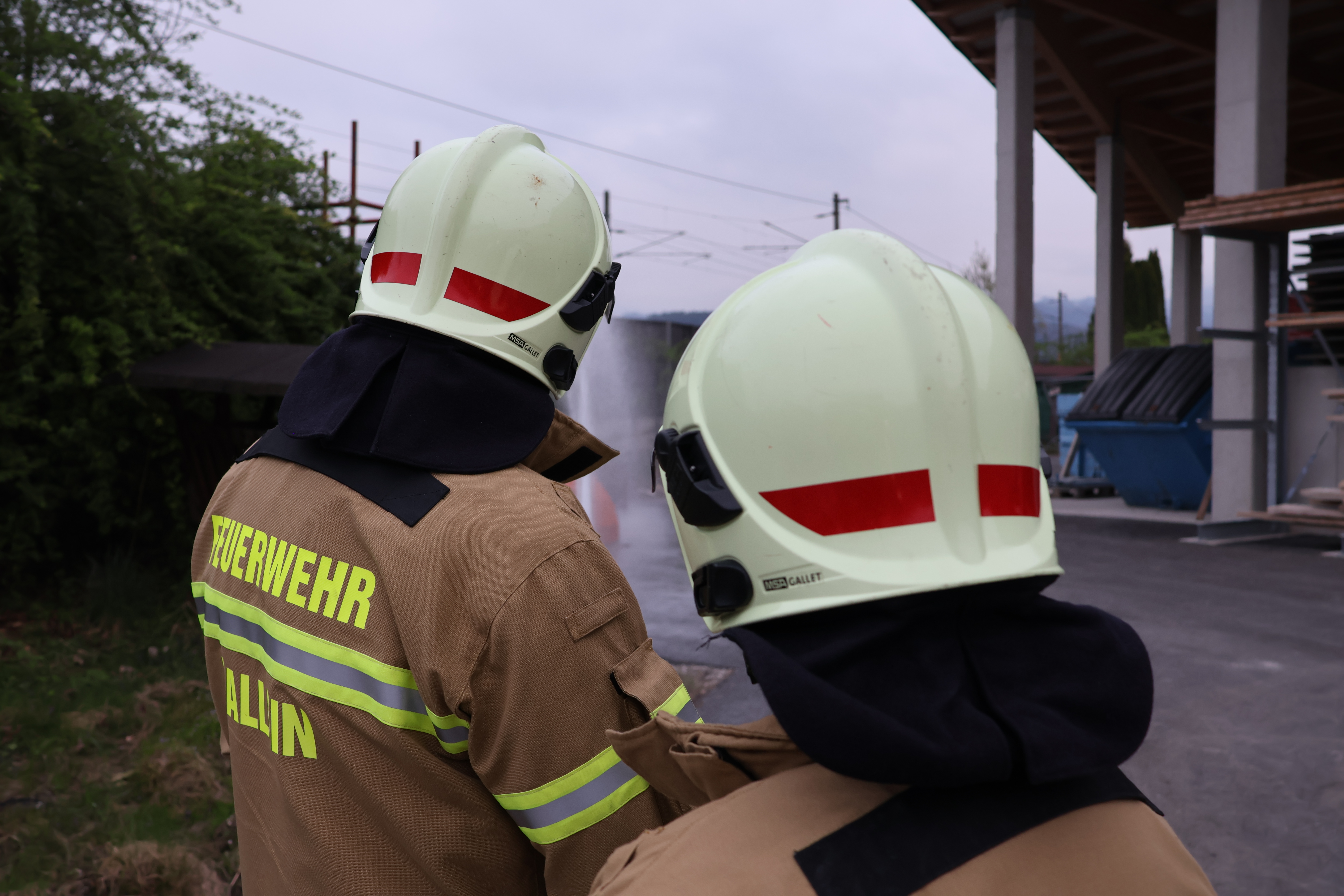 Am Mittwoch, den 15. April, führte die Hauptwache Hallein eine Brandeinsatzübung am Bauhof der Firma Baumeister Frank GmbH durch. Als Übungsszenario wurde ein Brand eines Diesel-Staplers angenommen, der sich rasch auf die Lagerhalle ausbreitete, in der sich das Fahrzeug befand.