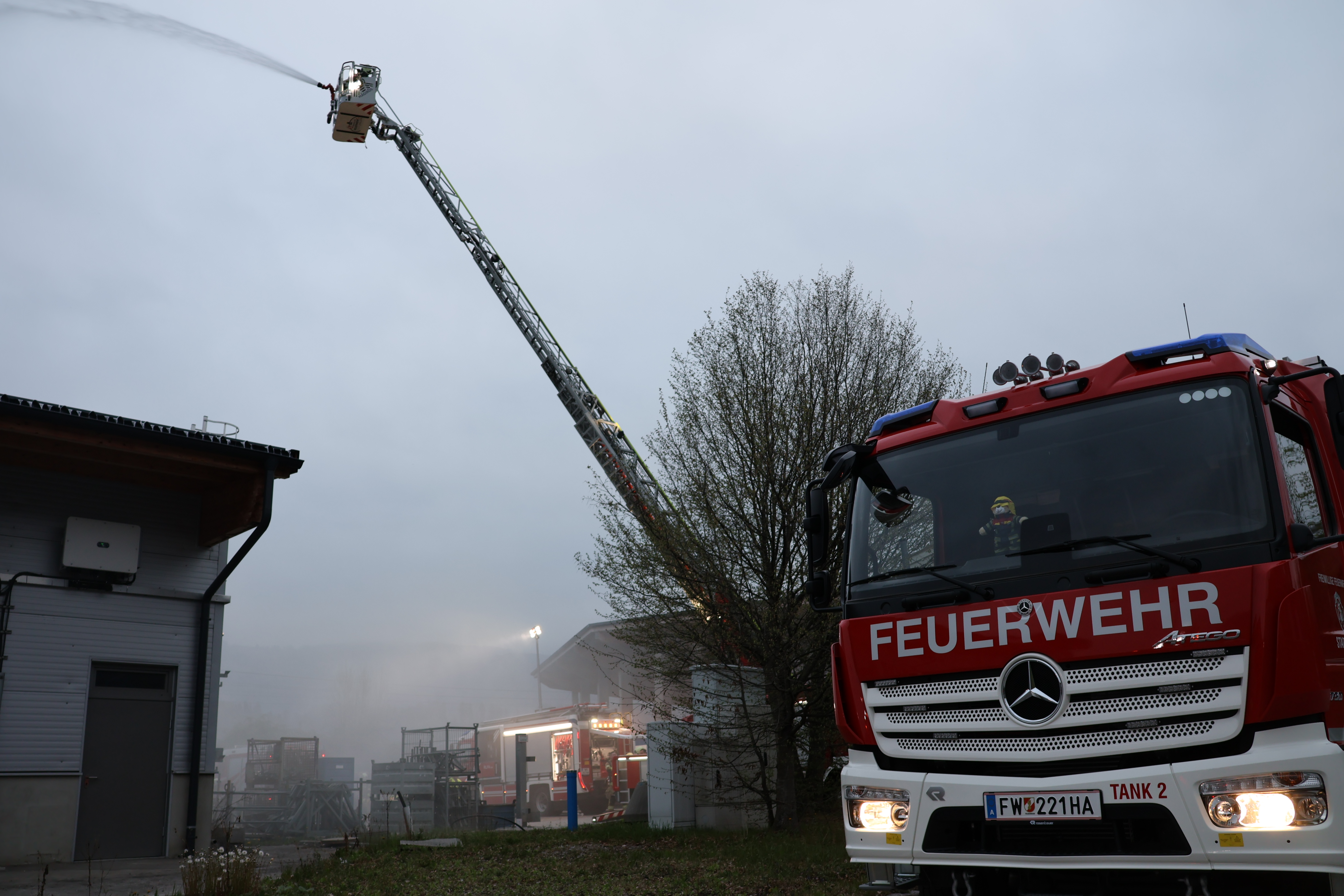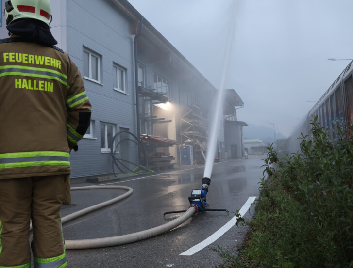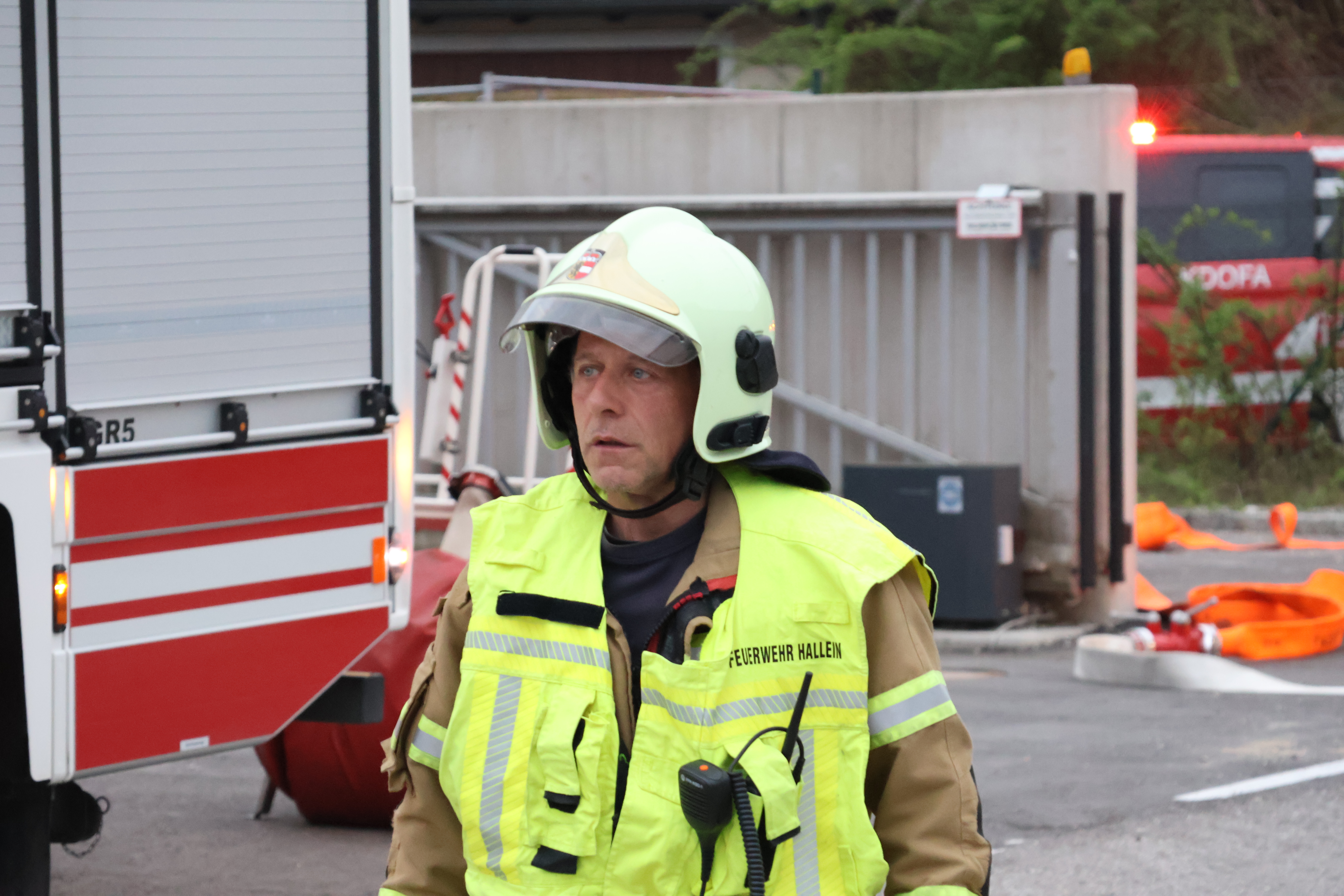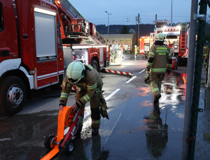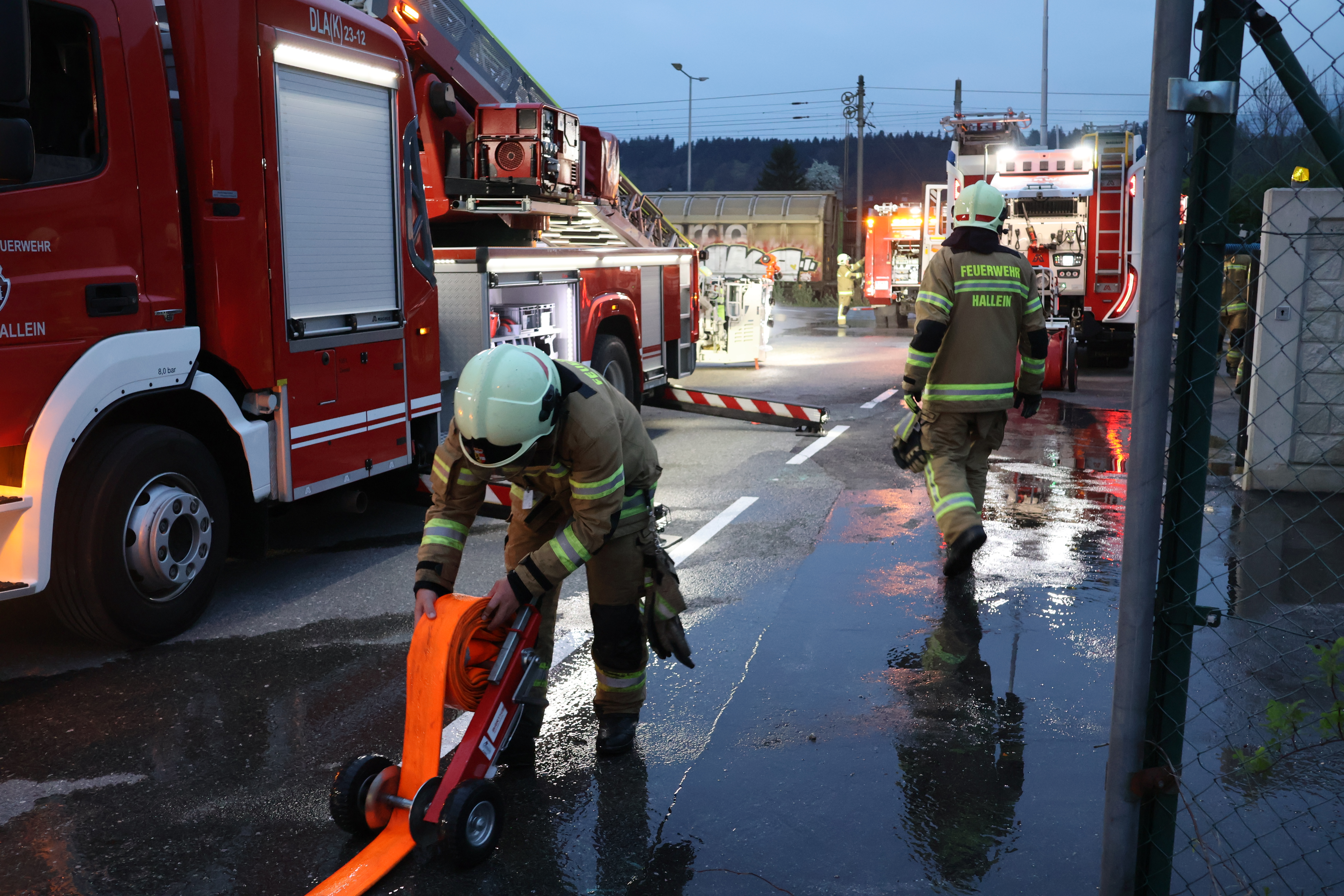 Am Mittwoch, den 15. April, führte die Hauptwache Hallein eine Brandeinsatzübung am Bauhof der Firma Baumeister Frank GmbH durch. Als Übungsszenario wurde ein Brand eines Diesel-Staplers angenommen, der sich rasch auf die Lagerhalle ausbreitete, in der sich das Fahrzeug befand.
