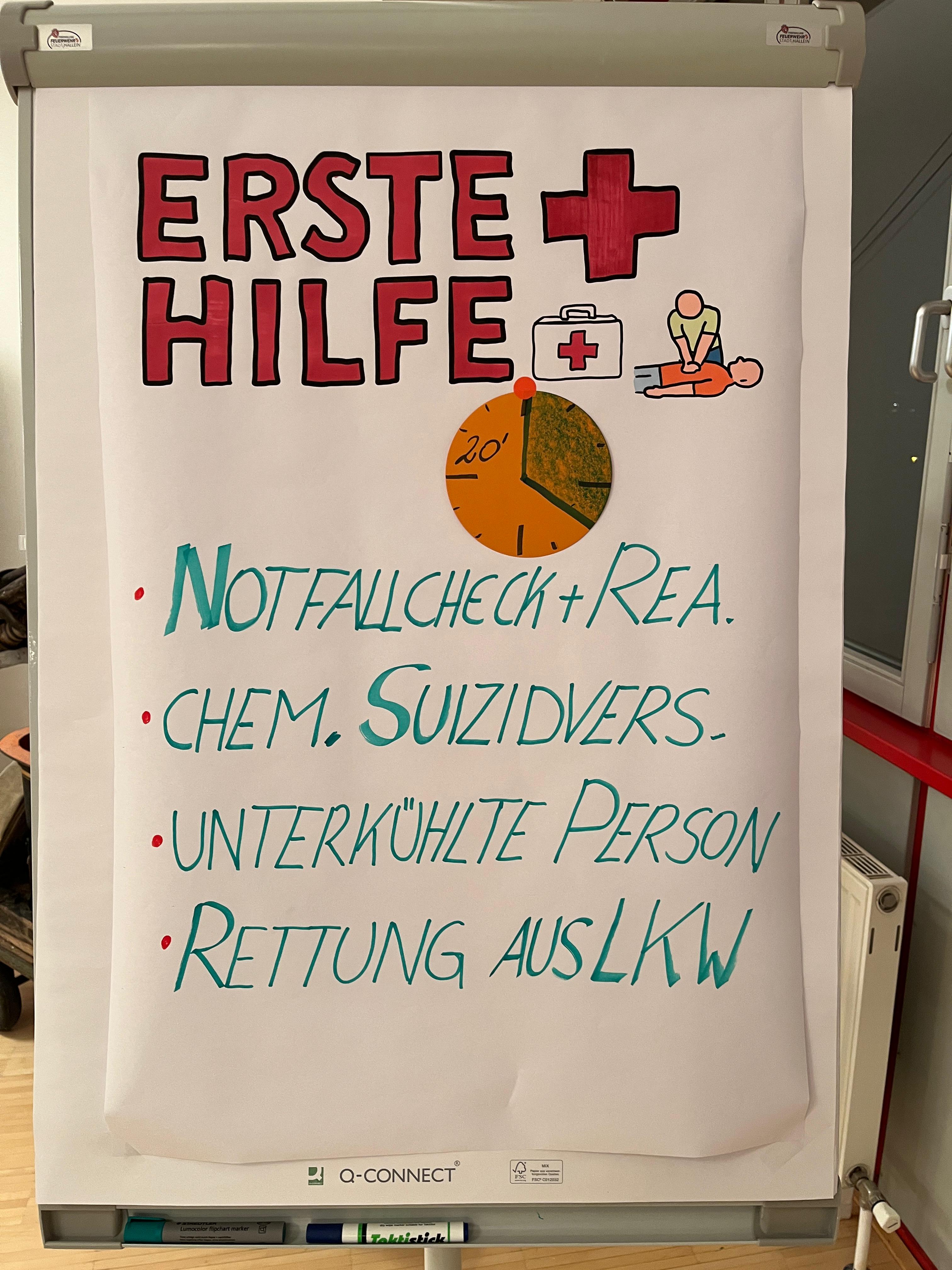 Bei diesen Schulungen wird beiderseits sehr großen Wert auf Abwechslung sowie Festigung von grundlegenden Erste-Hilfe-Maßnahmen gelegt.
