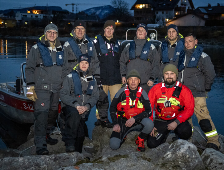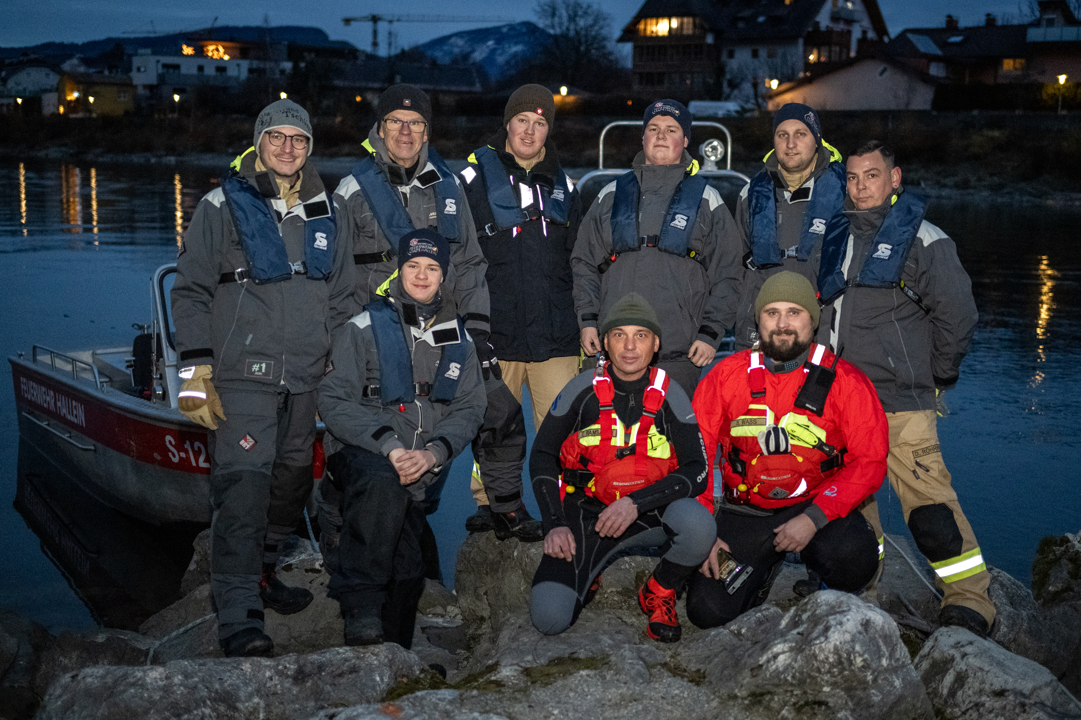 Als Sicherheitsmaßnahme für die Einsatzkräfte im Böschungsbereich zur Salzach wurden unsere Fließwasserretter des Tauchdienstes zusätzlich alarmiert.