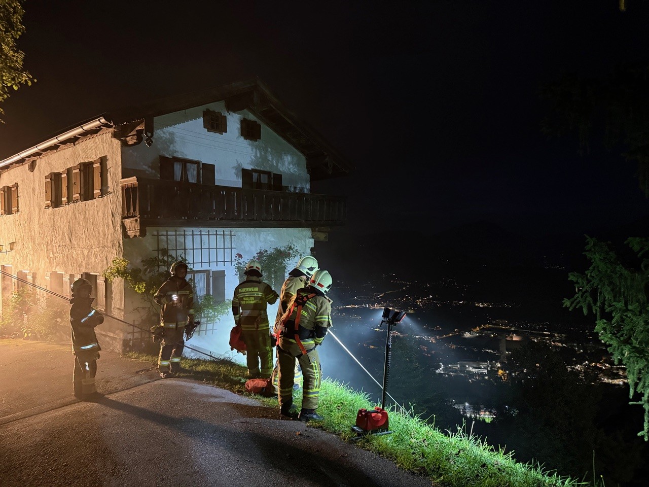 Durch einen Brandausbruch im Kellerbereich war das Gebäude stark verraucht, zudem wurde eine Person vermisst. Eine weitere Person war nach dem Verlassen des Gebäudes an der angrenzenden steilen