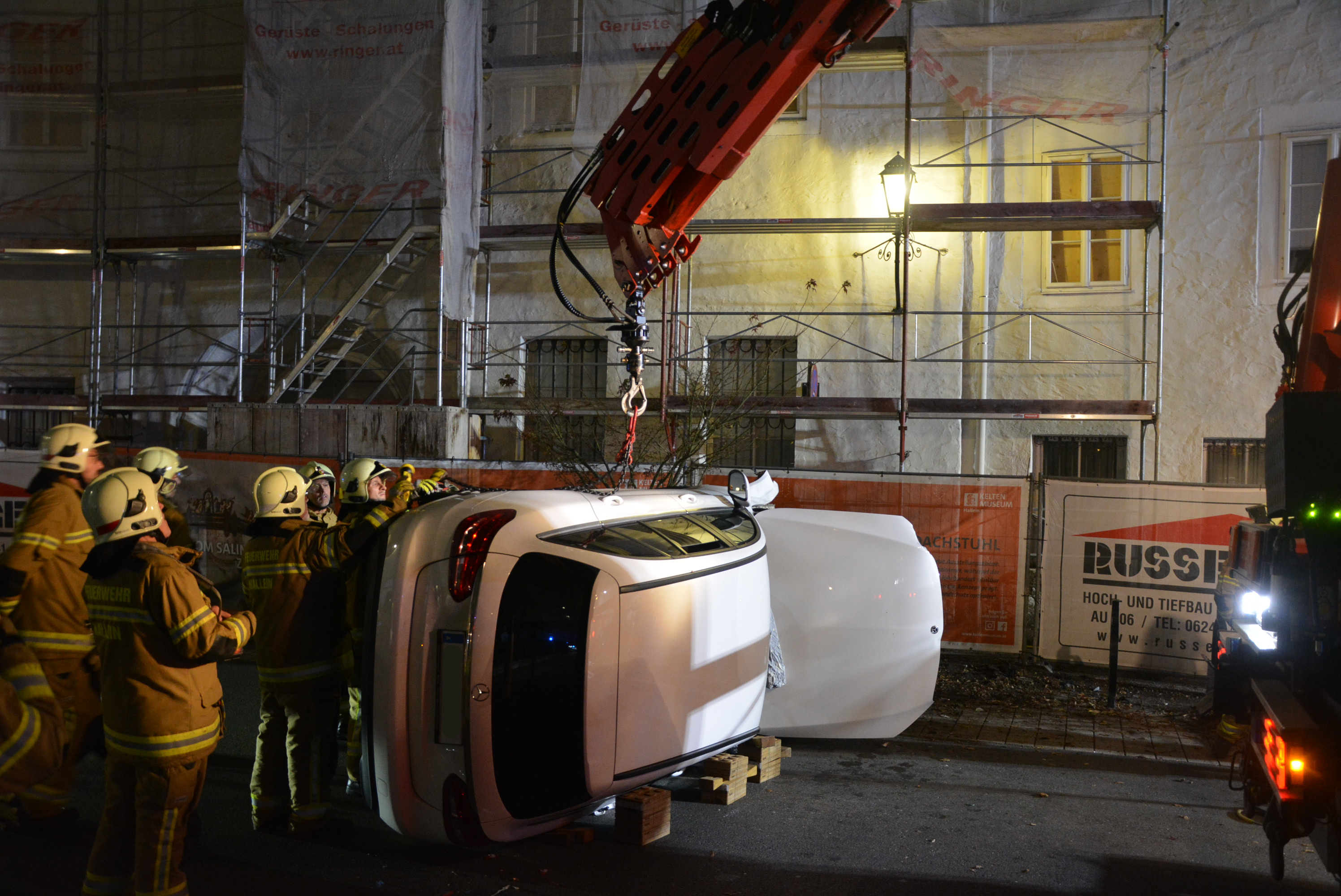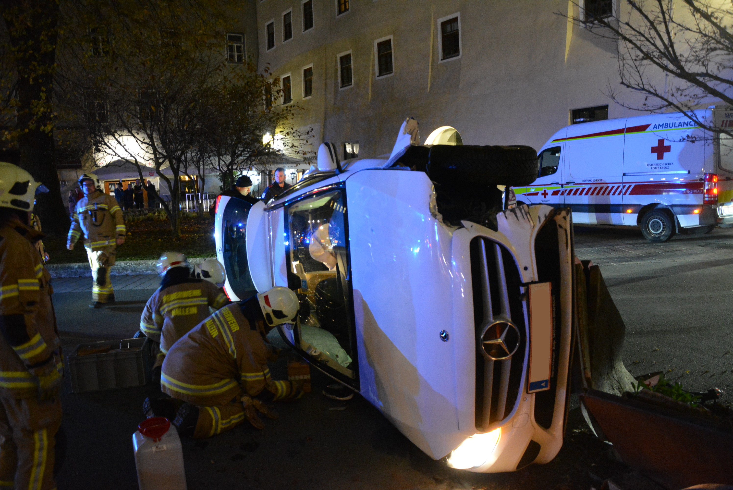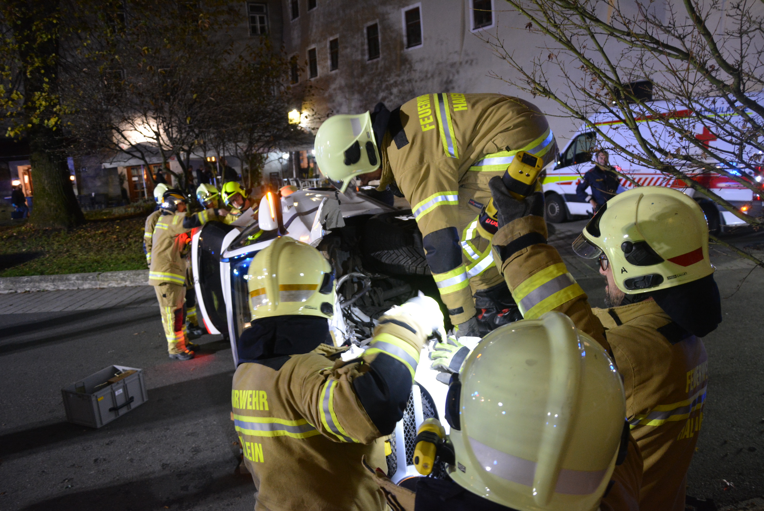 Die Hauptwache der Freiwilligen Feuerwehr Hallein wurde am 13. November 2025 um 21:26 Uhr zu einem Verkehrsunfall mit eingeklemmter Person in die Altstadt alarmiert.