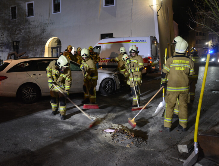 Zum Abschluss wurde die Unfallstelle gereinigt. Die Kräfte der Freiwilligen Feuerwehr Hallein konnten daraufhin wieder einrücken.
