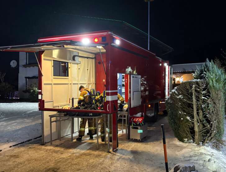 Im weiteren Verlauf traf der zuständige Rauchfangkehrer an der Einsatzstelle ein und unterstützte die Maßnahmen. Insgesamt standen fünf Atemschutztrupps im Einsatz.
