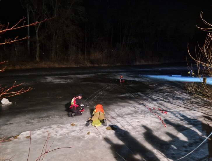 Im weiteren Verlauf musste der LKW nach kurzer Strecke erneut anhalten, da eine leichte Steigung sowie die glatte Fahrbahn keinen ausreichenden Halt für die Reifen boten. Mittels der Abschleppstange des Rüstlöschfahrzeuges wurde das Fahrzeug schließlich auf eine ebene Fläche gezogen.