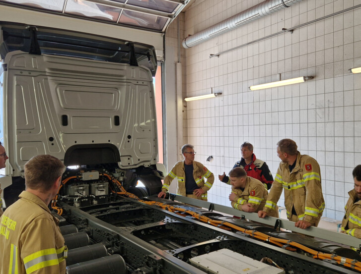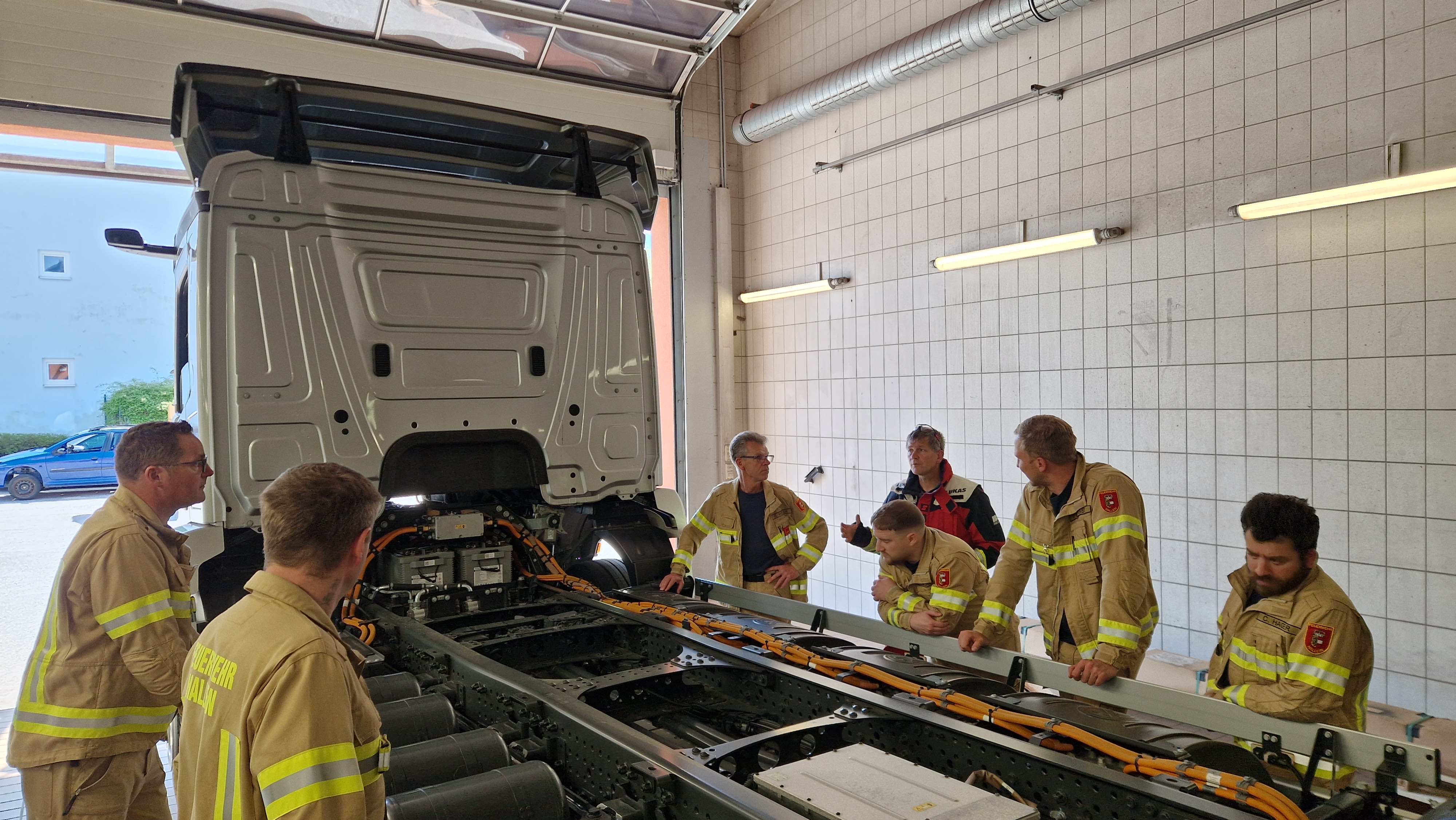 Der Auftakt erfolgte am Freitagnachmittag mit dem LKW-Rettungstraining, das nach der erfolgreichen Premiere nun bereits zum zweiten Mal durchgeführt wurde. Neun Teilnehmer nahmen daran teil und konnten ihr Know-how in diesem speziellen Bereich vertiefen. Nach einer theoretischen Einführung ging es rasch in die Praxis. Besonders interessant war die Besichtigung eines von der Firma Steindl & Mayr bereitgestellten eActros, der Einblicke in moderne Nutzfahrzeugtechnik und Elektromobilität ermöglichte. Mithilfe der Rettungskarte wurde das Fahrzeug systematisch analysiert.