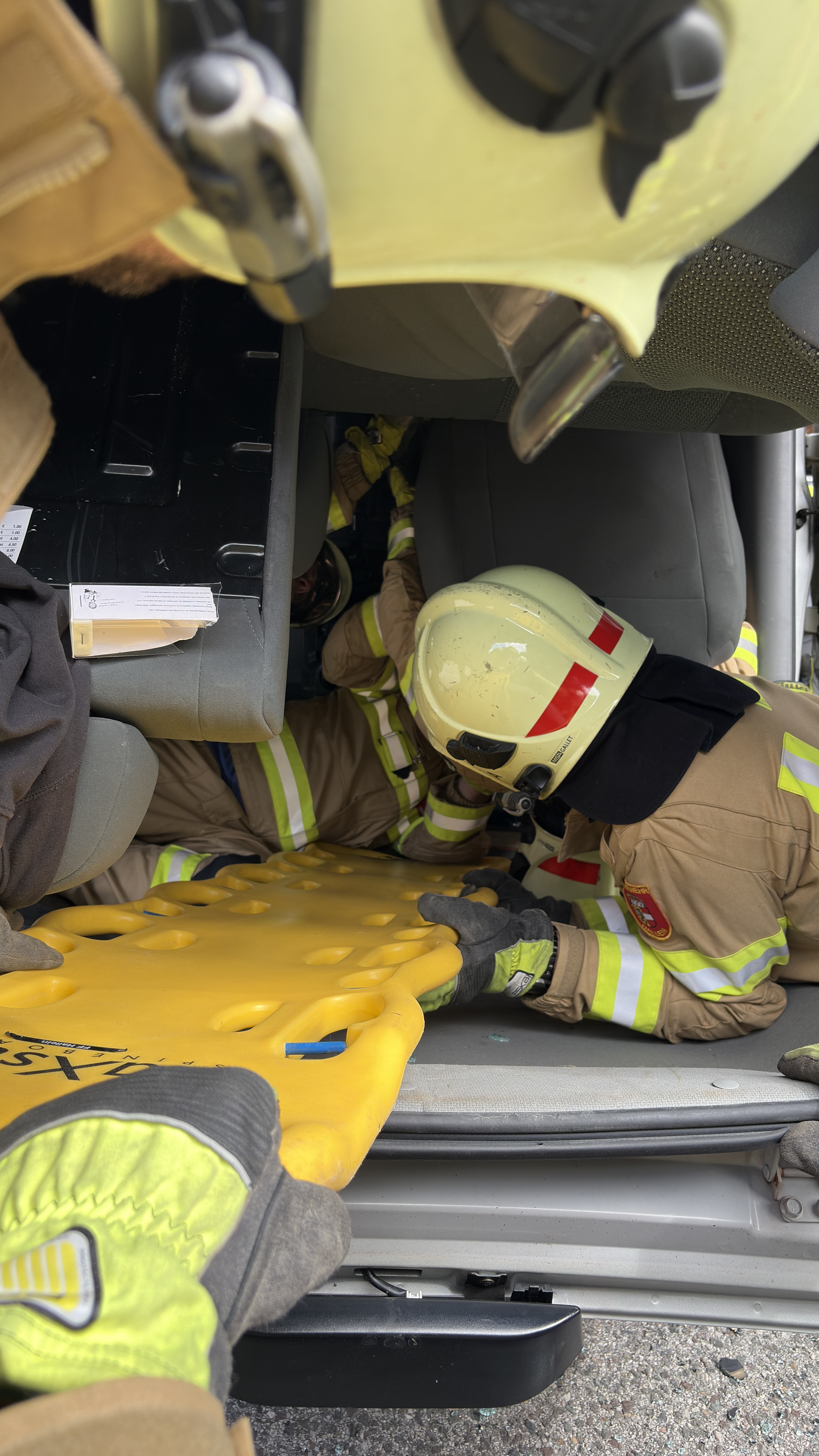 Am Samstag startete um 07:30 Uhr ein weiteres Seminar, diesmal zum Thema PKW-Rettung, an dem elf Mitglieder teilnahmen. Zu Beginn wurden wichtige theoretische Inhalte vermittelt, darunter Fahrzeugaufbau, Sicherheitssysteme, alternative Antriebsformen sowie taktische Vorgehensweisen aus der Praxis.