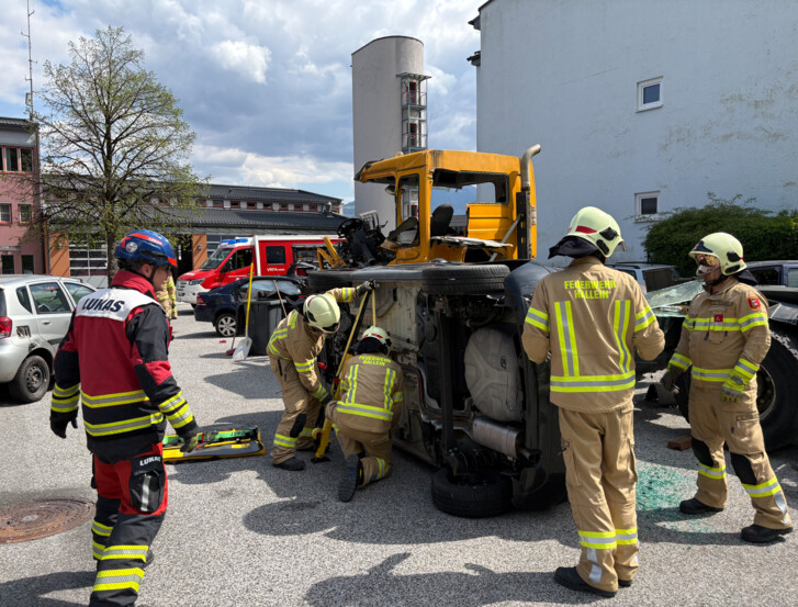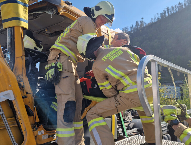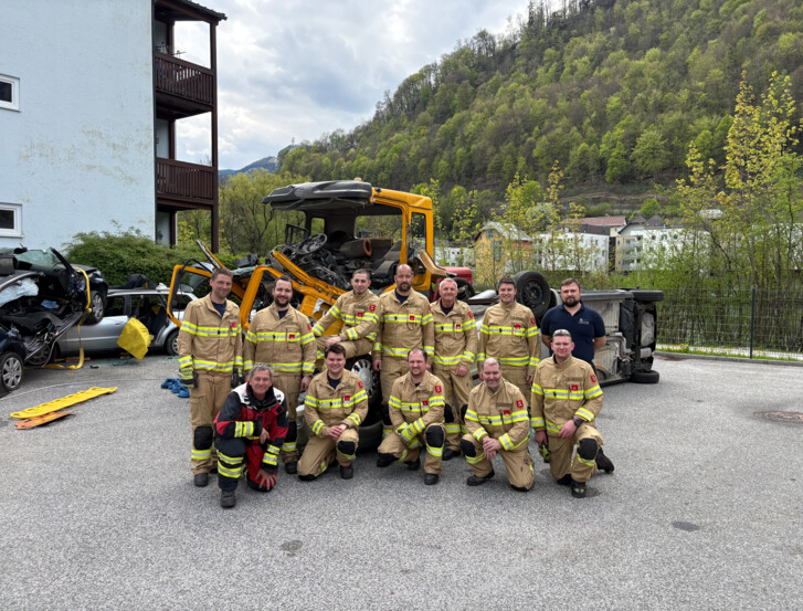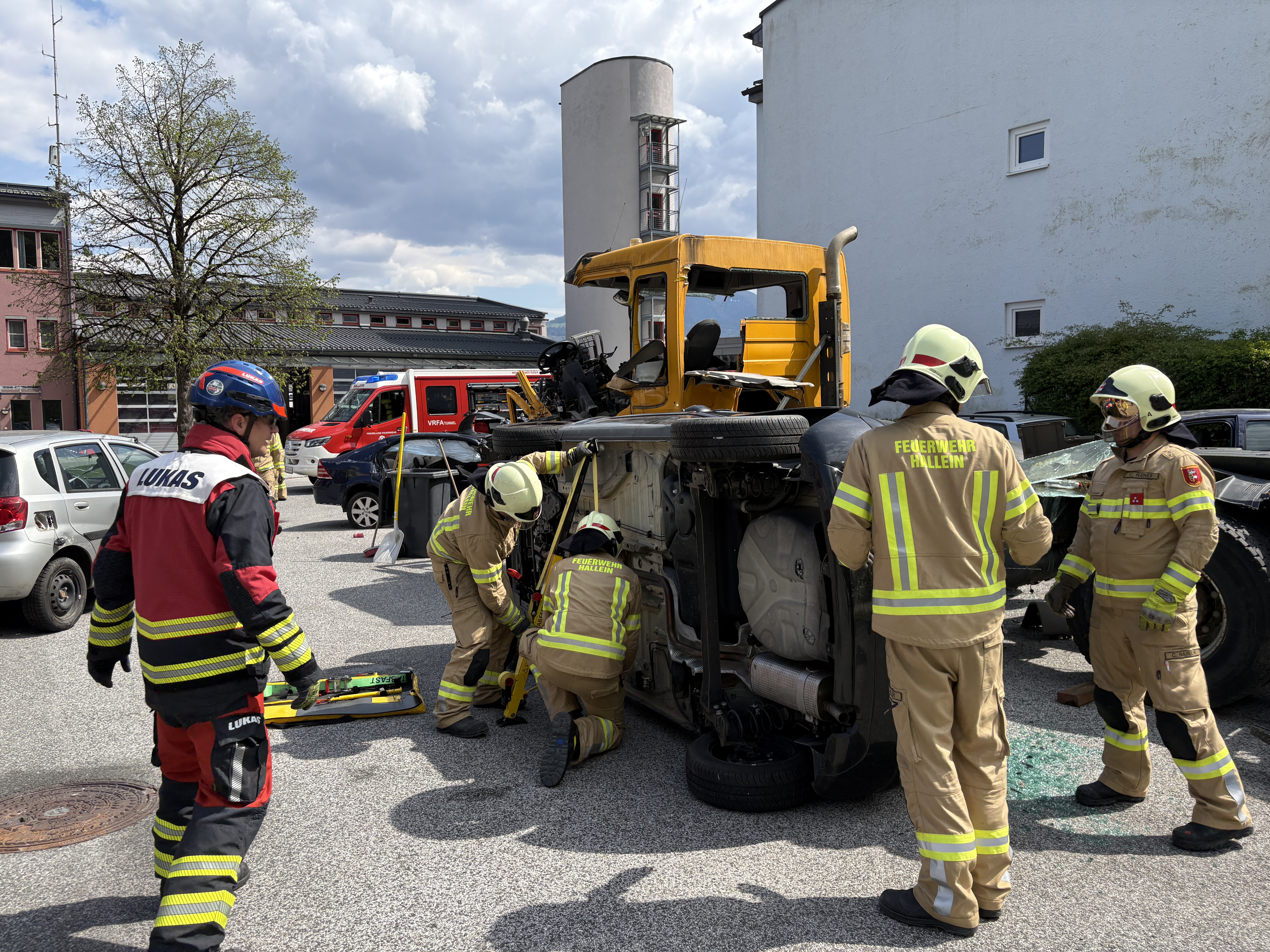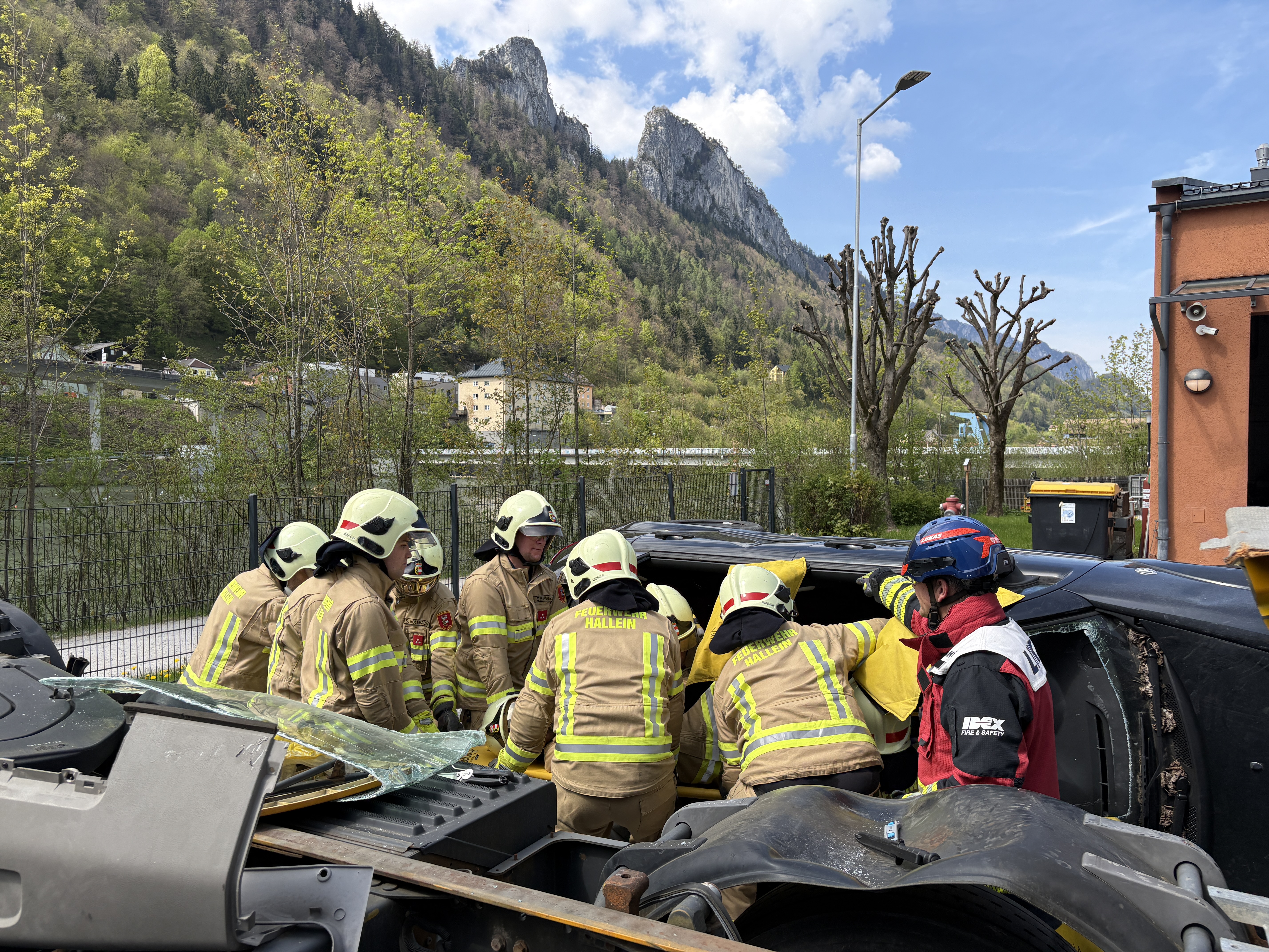 Am 17. und 18. April 2026 stand am Gelände des Feuerwehrhauses Hallein erneut die schonende Rettung von Personen aus PKW und LKW im Mittelpunkt einer intensiven Schulung. Sowohl Führungskräfte als auch Mannschaftsmitglieder nutzten die Gelegenheit, ihr Wissen und ihre praktischen Fähigkeiten weiter auszubauen.