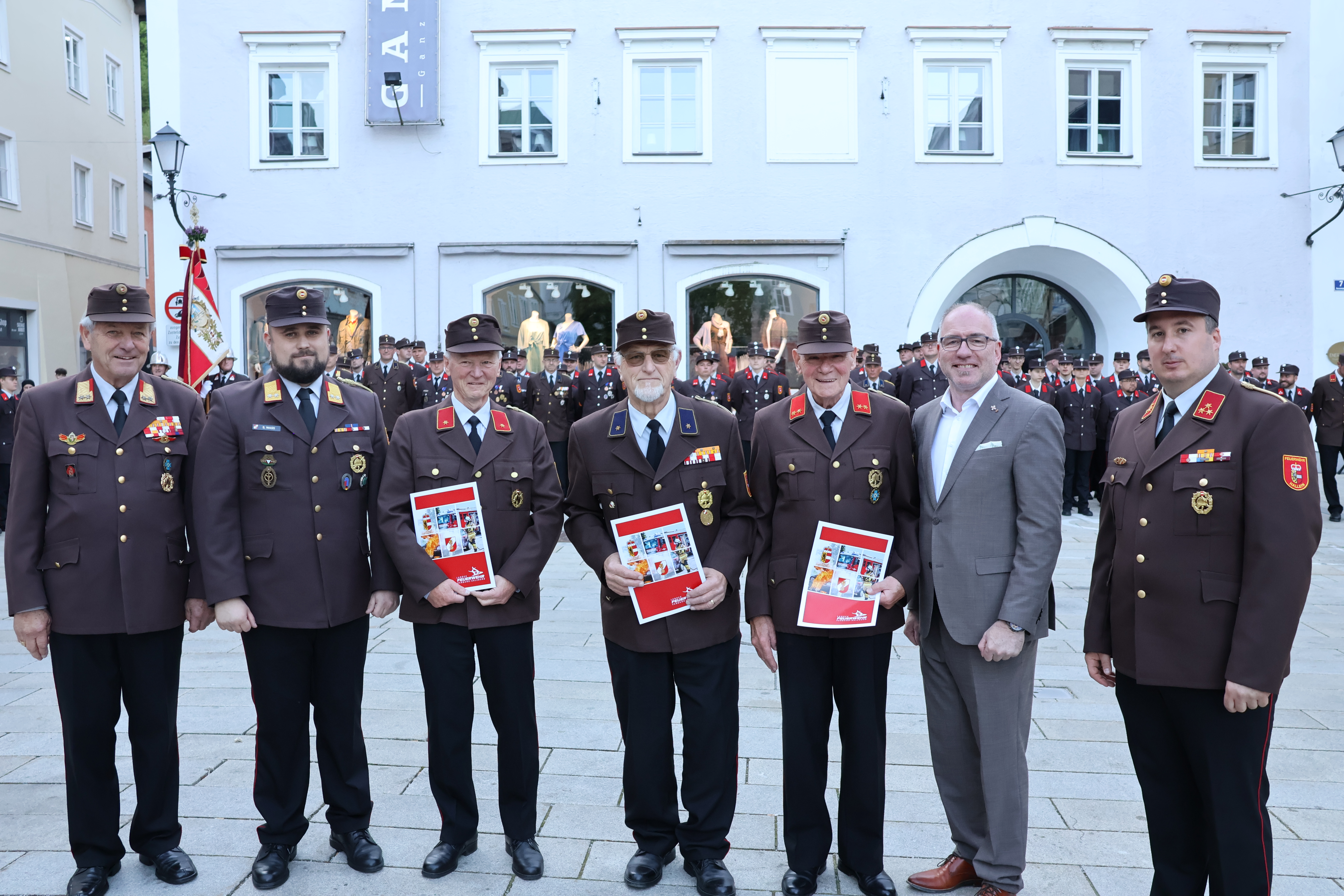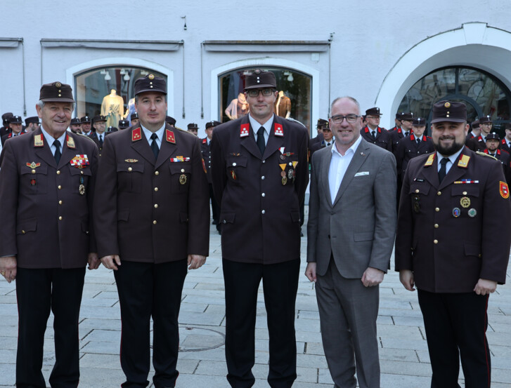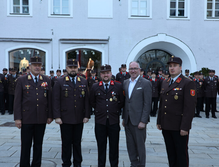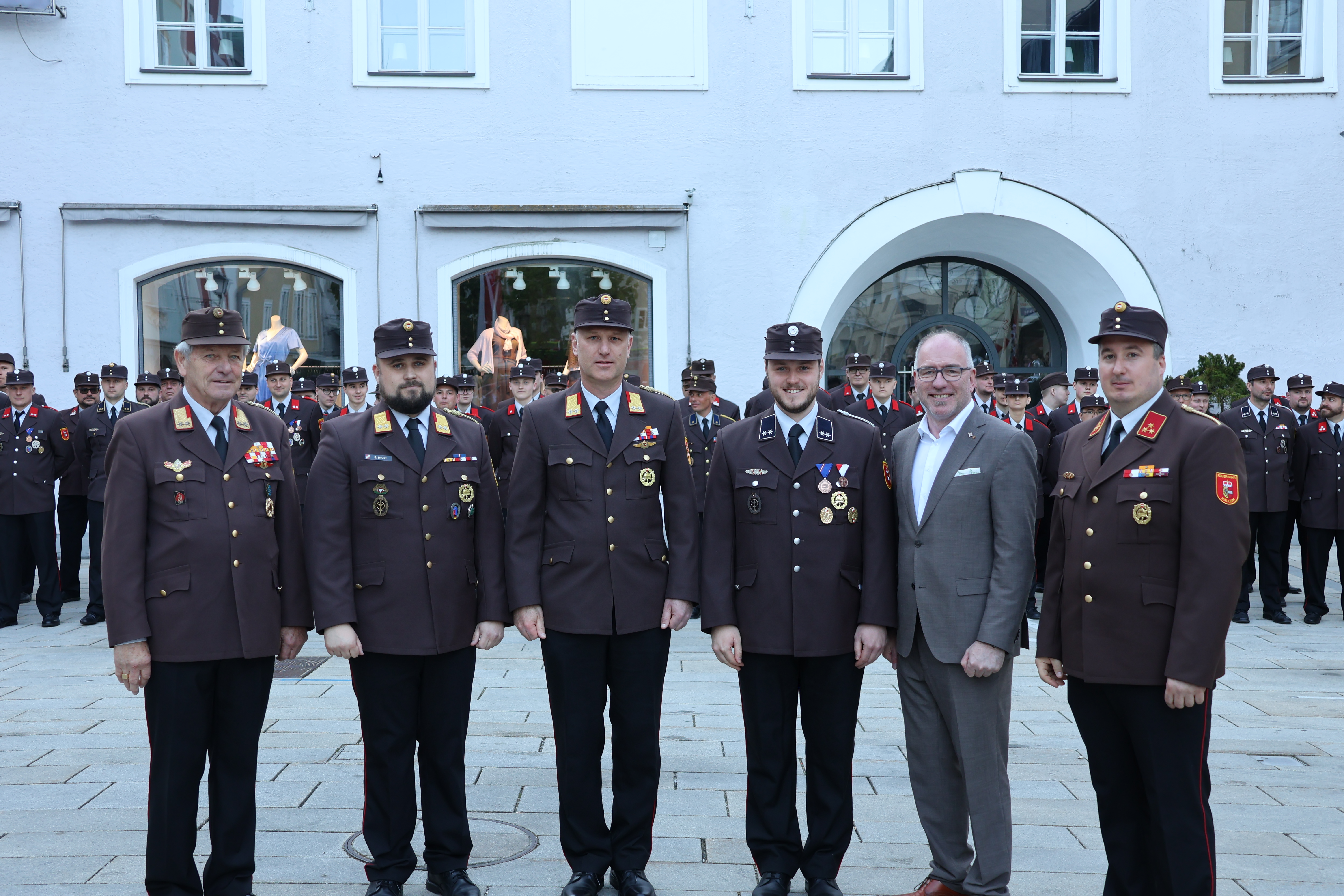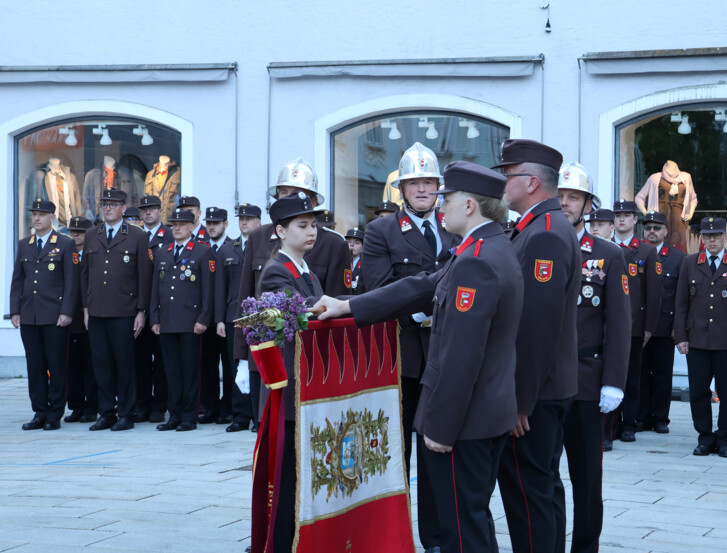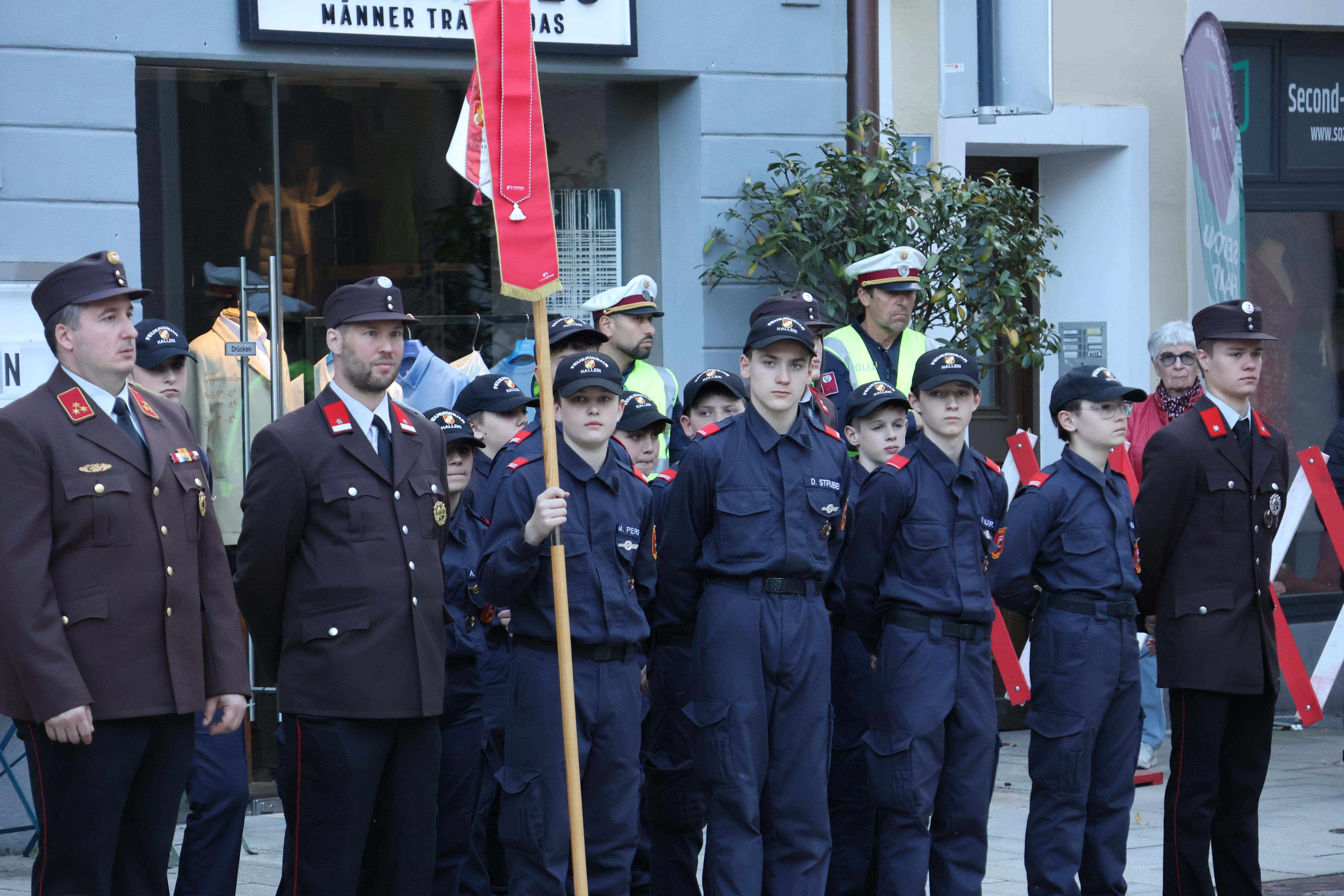 Im Anschluss daran fand am Kornsteinplatz der offizielle Festakt statt. Ortsfeuerwehrkommandant BR Sebastian Wass konnte dabei zahlreiche Ehrengäste aus Politik und Feuerwehrwesen begrüßen, darunter auch Bürgermeister Alexander Stangassinger.