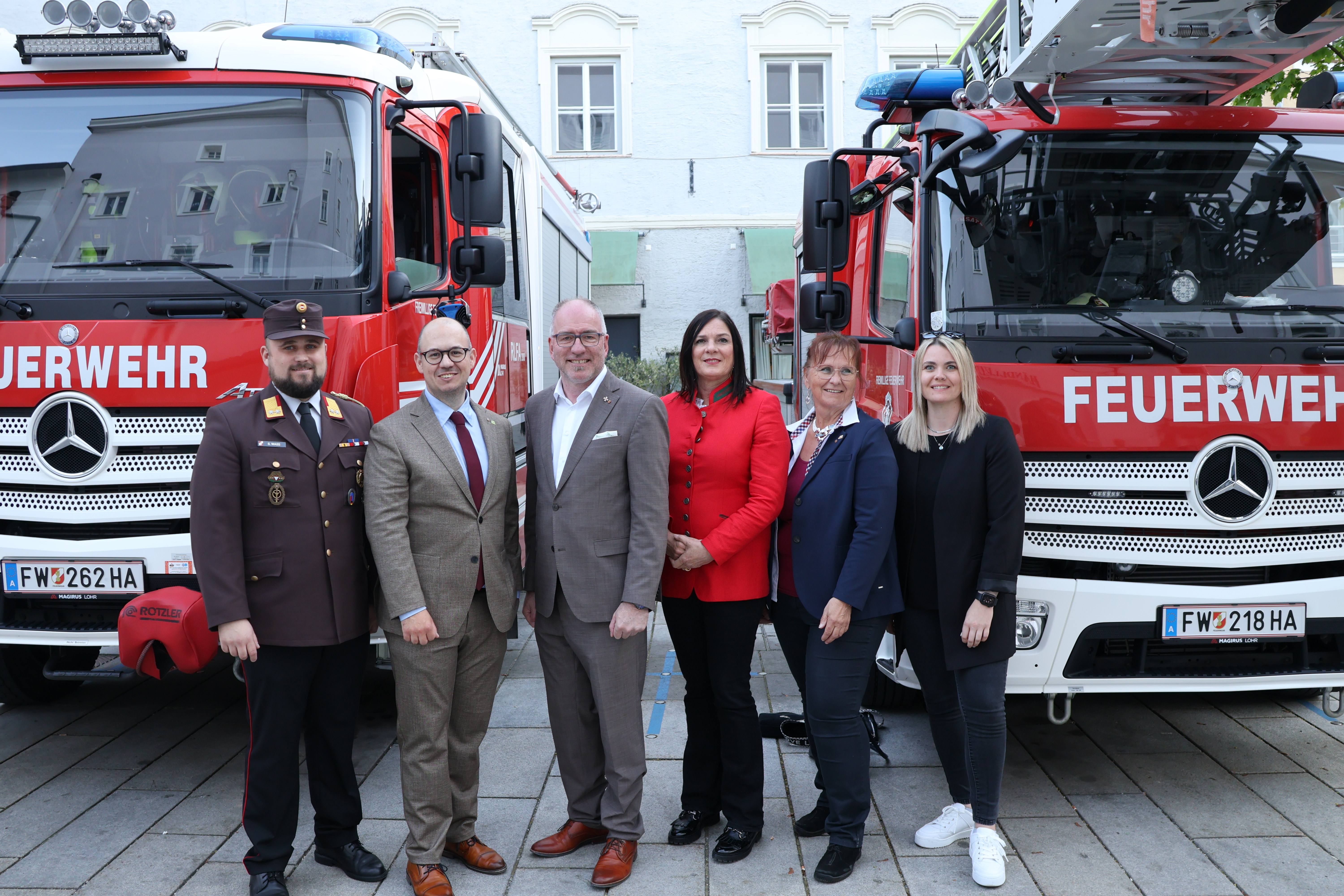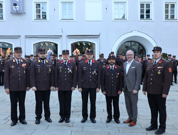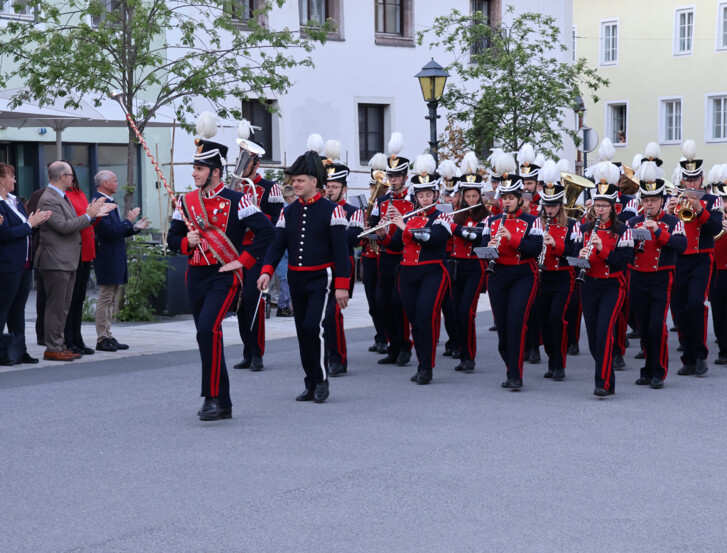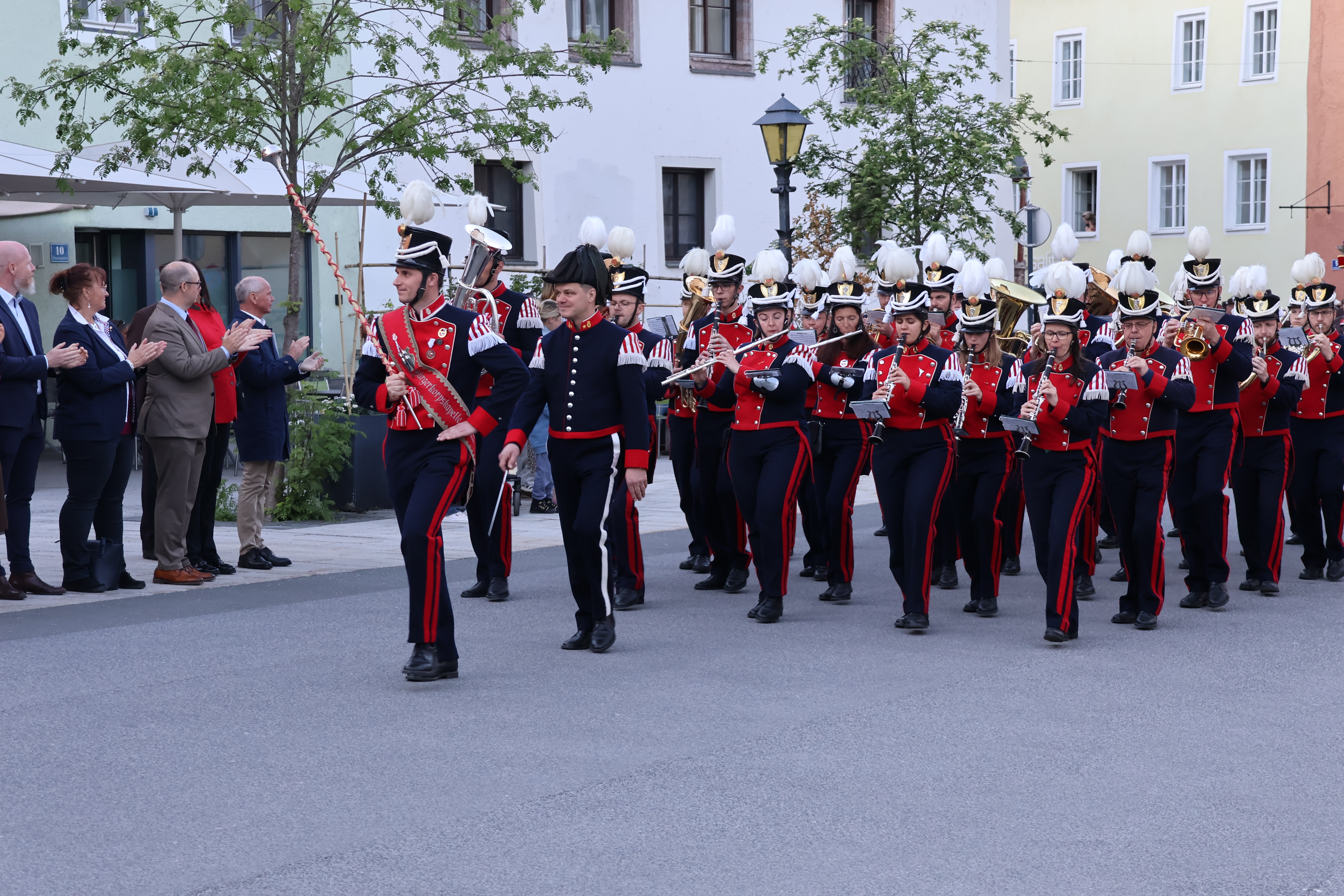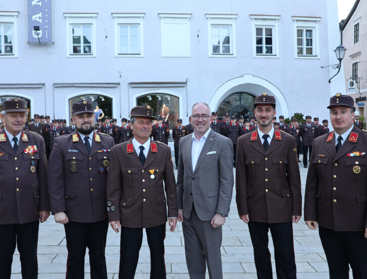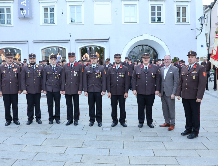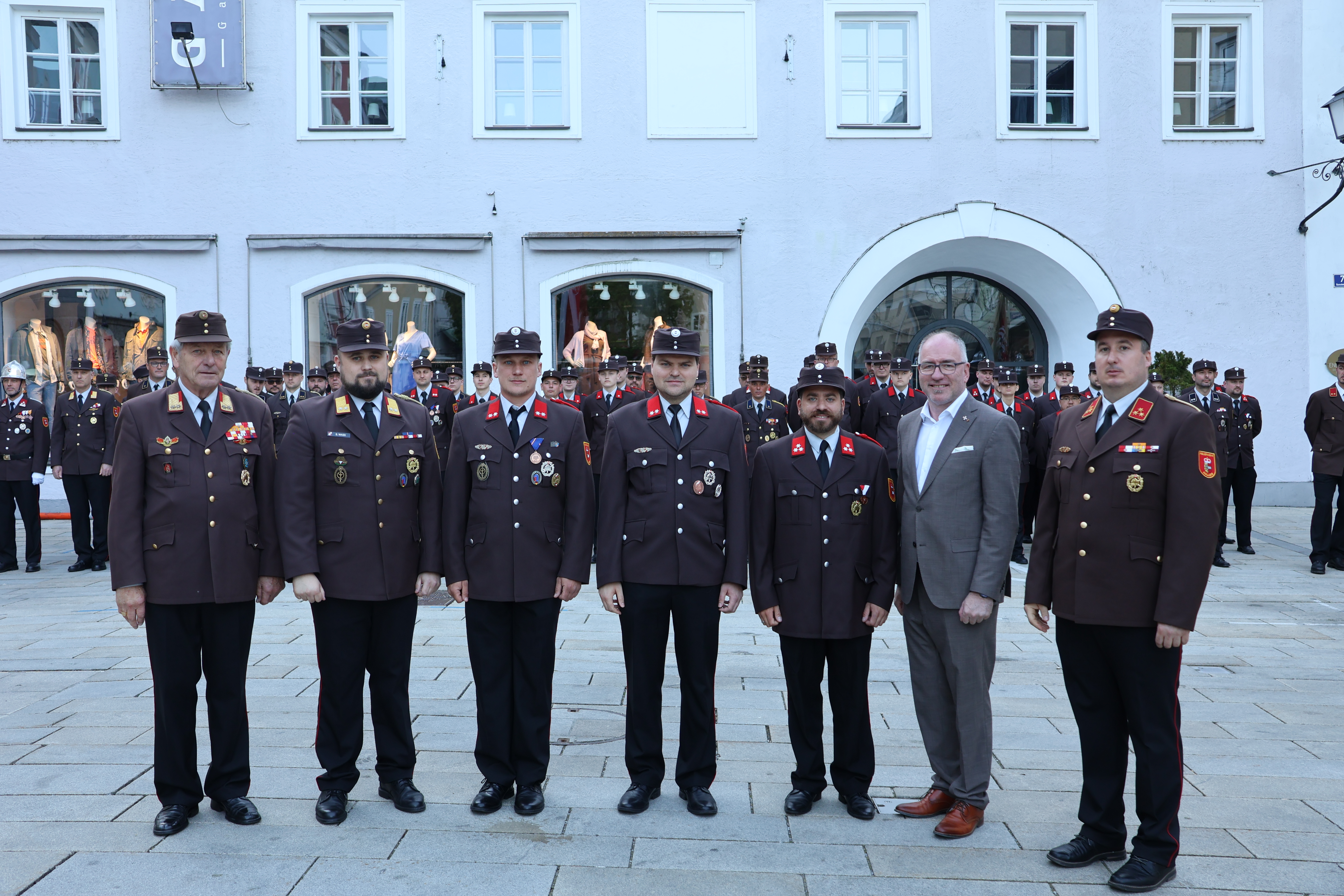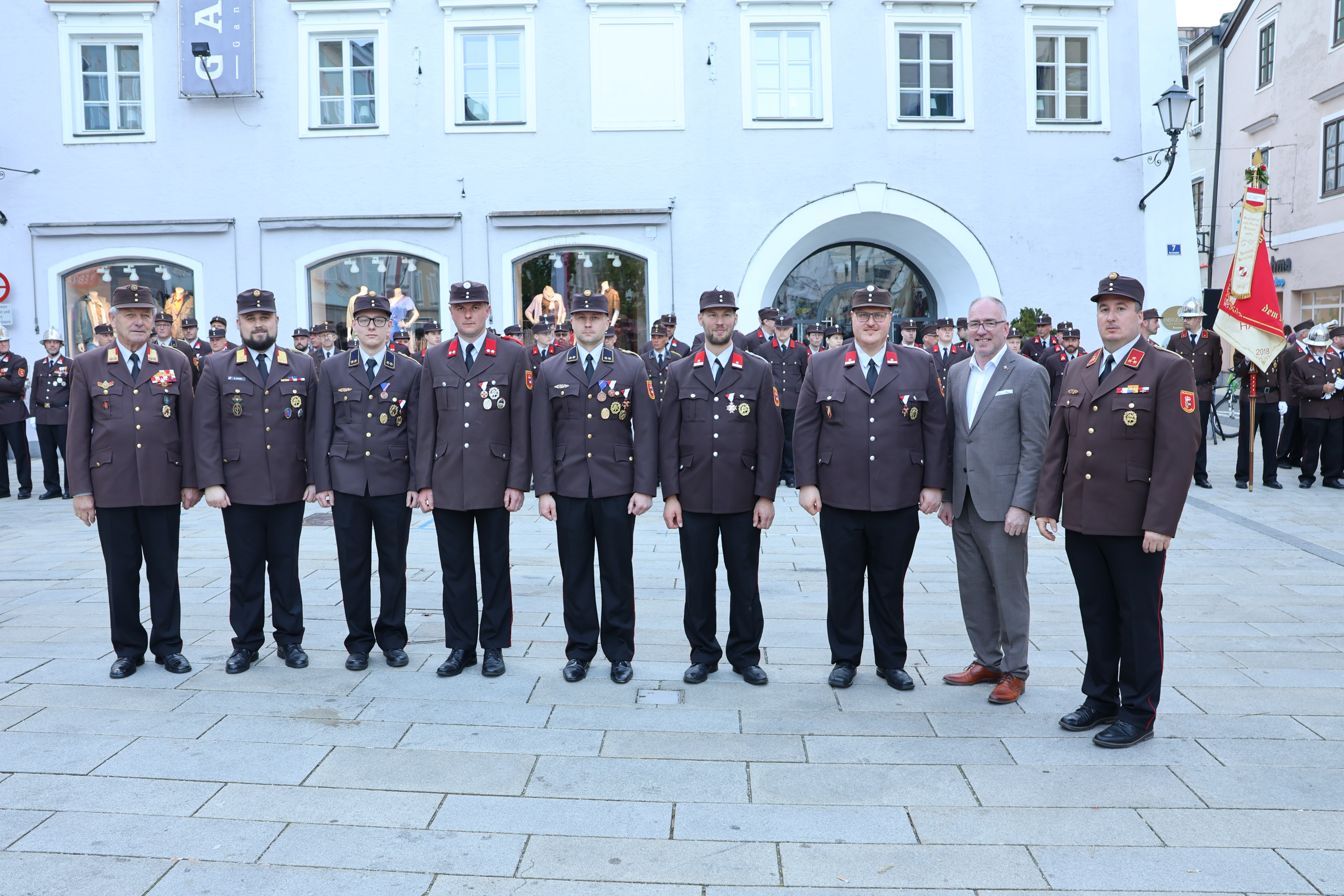 Im Anschluss daran fand am Kornsteinplatz der offizielle Festakt statt. Ortsfeuerwehrkommandant BR Sebastian Wass konnte dabei zahlreiche Ehrengäste aus Politik und Feuerwehrwesen begrüßen, darunter auch Bürgermeister Alexander Stangassinger.