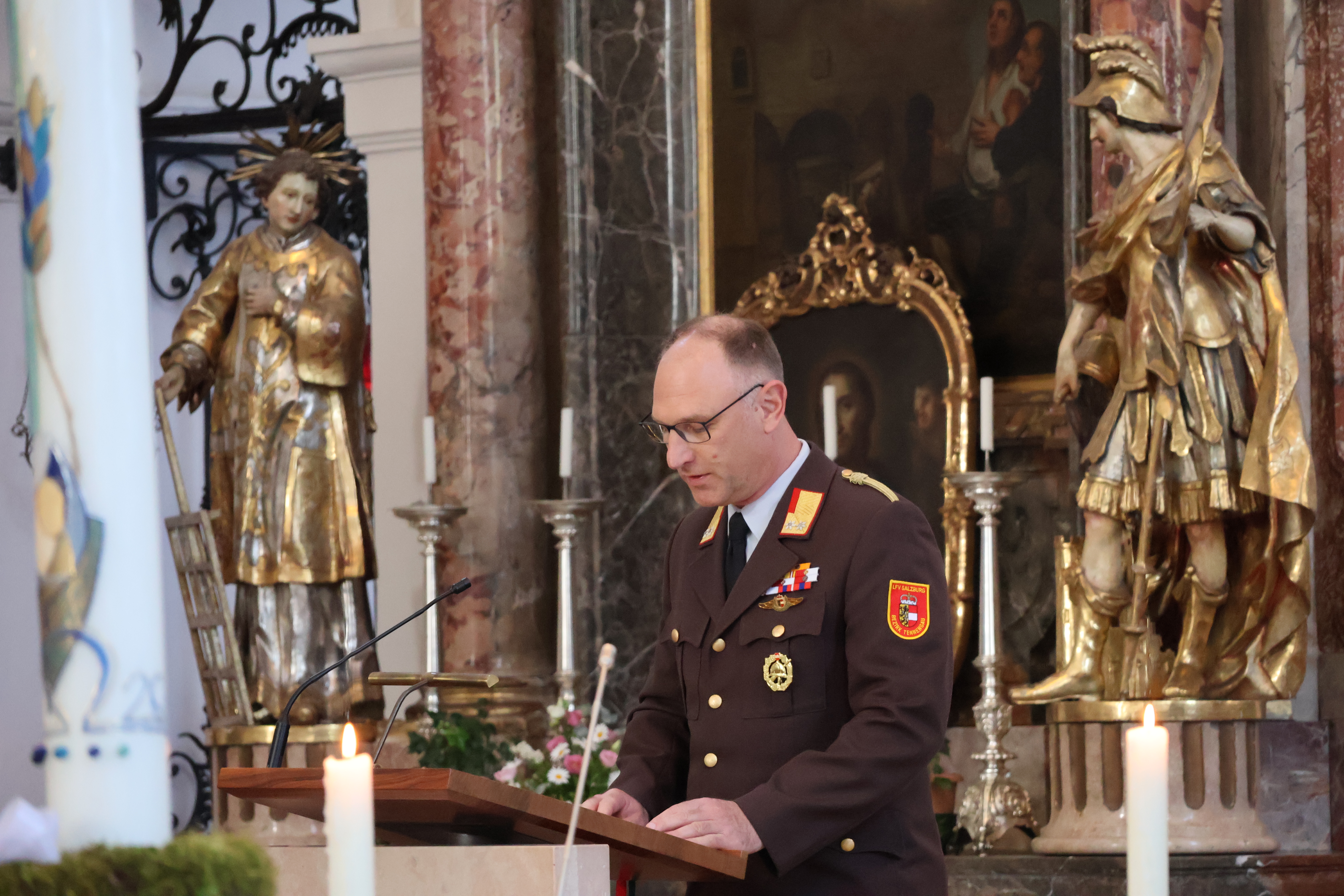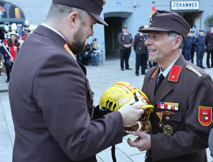Eine besondere Note erhielt die diesjährige Florianifeier durch die Verabschiedung von Bereitschaftsoffizier BI Alexander Sapciyan, der mit 1. Mai 2026 in den nicht aktiven Stand übertritt. Als sichtbares Zeichen des Dankes und der Wertschätzung wurde ihm vom Ortsfeuerwehrrat ein eigens gebrandeter Einsatzhelm überreicht, der ihn künftig an seine aktive Zeit erinnern soll.