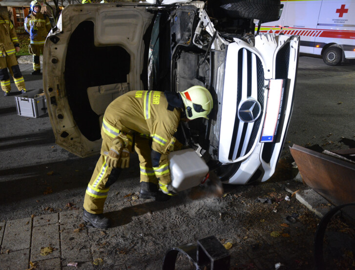 Beim Eintreffen des Einsatzleiters zeigte sich folgende Lage: Ein Pkw lag nach einer Kollision mit einem Blumentrog seitlich auf der Fahrbahn. Glücklicherweise konnte der Lenker bereits vor dem Eintreffen der Einsatzkräfte von Passanten aus dem Fahrzeug befreit werden. Das Rote Kreuz übernahm umgehend die medizinische Versorgung des Fahrers.