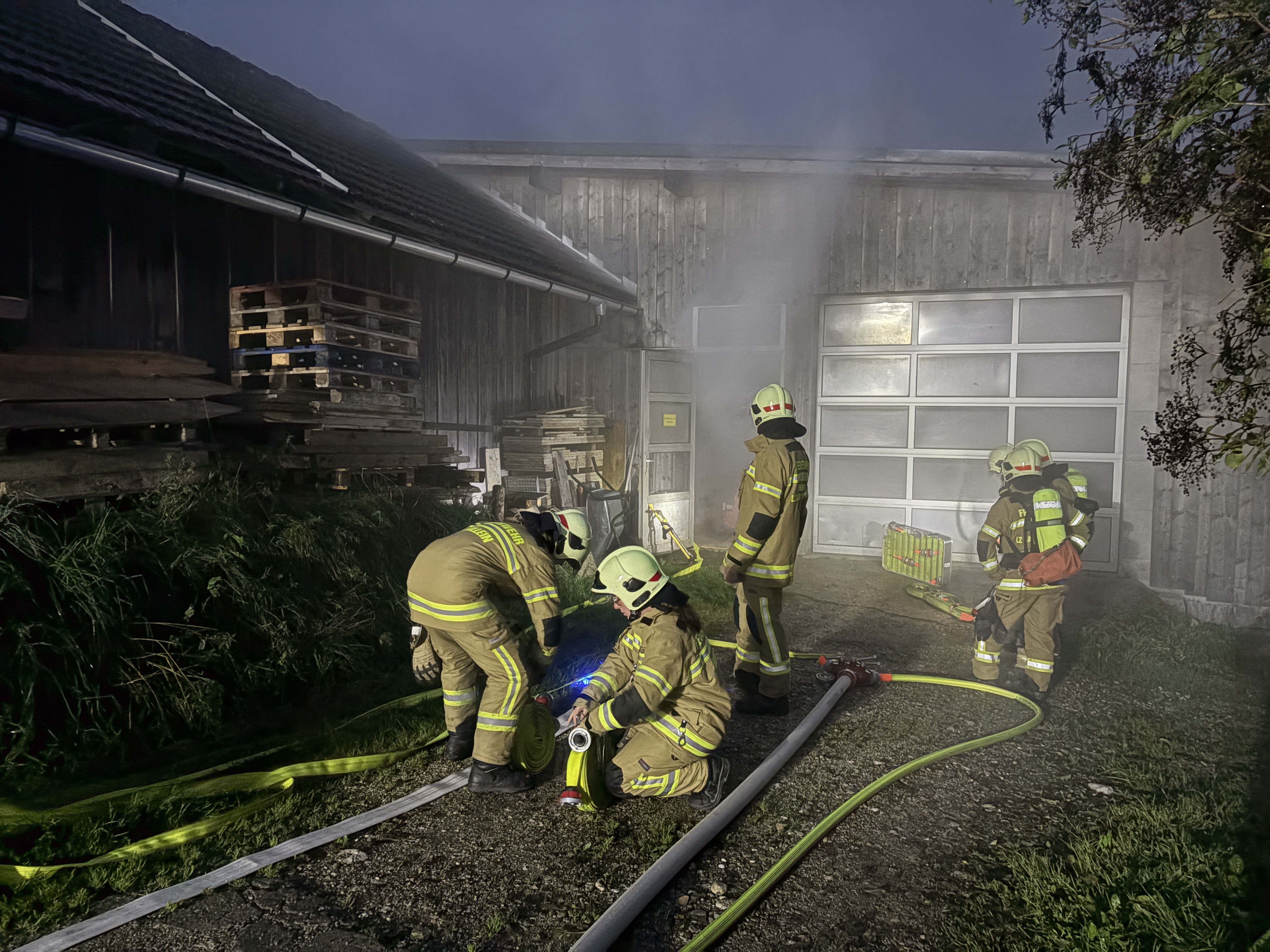 Am Mittwoch, den 24. September 2025, fand eine Gemeinschaftsübung des Löschzugs Bad Dürrnberg mit der Hauptwache Hallein am Dürrnberg statt. Übungsannahme war, dass in einem landwirtschaftlichen Objekt eine Maschine in Brand geriet. Das Feuer breitete sich auf das gesamte Gebäude aus, zwei Personen wurden im Objekt vermisst.