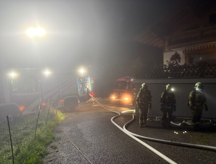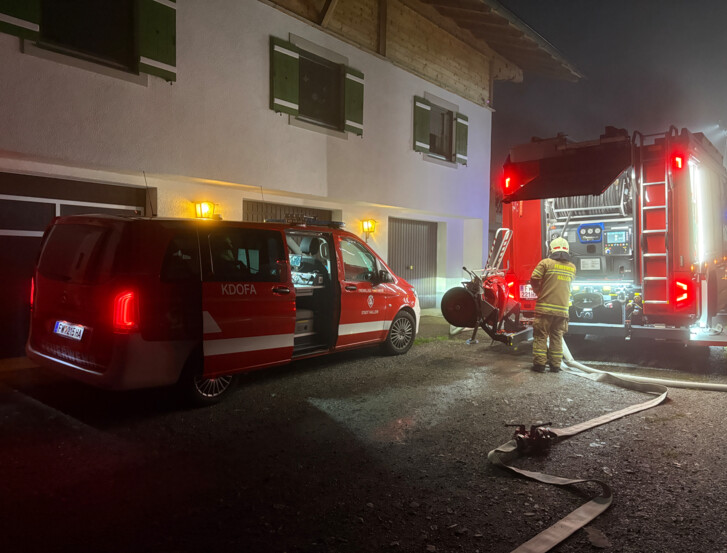 Die Besatzung der Pumpe Dürrnberg kümmerte sich derweil um die Rettung der durch die Rauchentwicklung eingeschlossenen Person. Mithilfe des Rollgliss konnte diese gesichert aus dem Haus gebracht werden.
