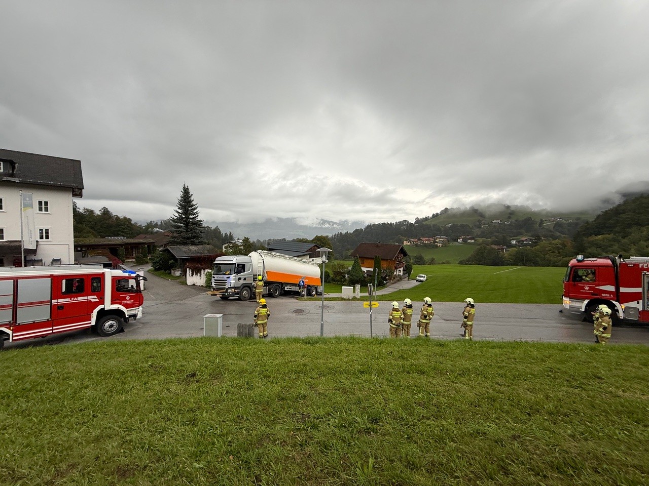 Ein mit Pellets beladener LKW war von der Straße abgekommen und steckte mit mehreren Reifen in der angrenzenden Wiese fest, sodass er die befestigte Fahrbahn nicht mehr selbstständig erreichen konnte. Unverzüglich erfolgten die Erkundung durch den Einsatzleiter sowie die Totalsperre der Straße im Bereich der Einsatzstelle. Der LKW wurde zunächst mit der Einbauseilwinde der Pumpe Dürrnberg gegen ein weiteres Abrutschen gesichert. Nach genauer Lageerkundung wurde entschieden, zur weiteren Absicherung des Fahrzeuges den Rüst Hallein anzufordern.