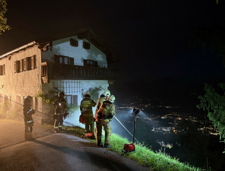 Durch einen Brandausbruch im Kellerbereich war das Gebäude stark verraucht, zudem wurde eine Person vermisst. Eine weitere Person war nach dem Verlassen des Gebäudes an der angrenzenden steilen