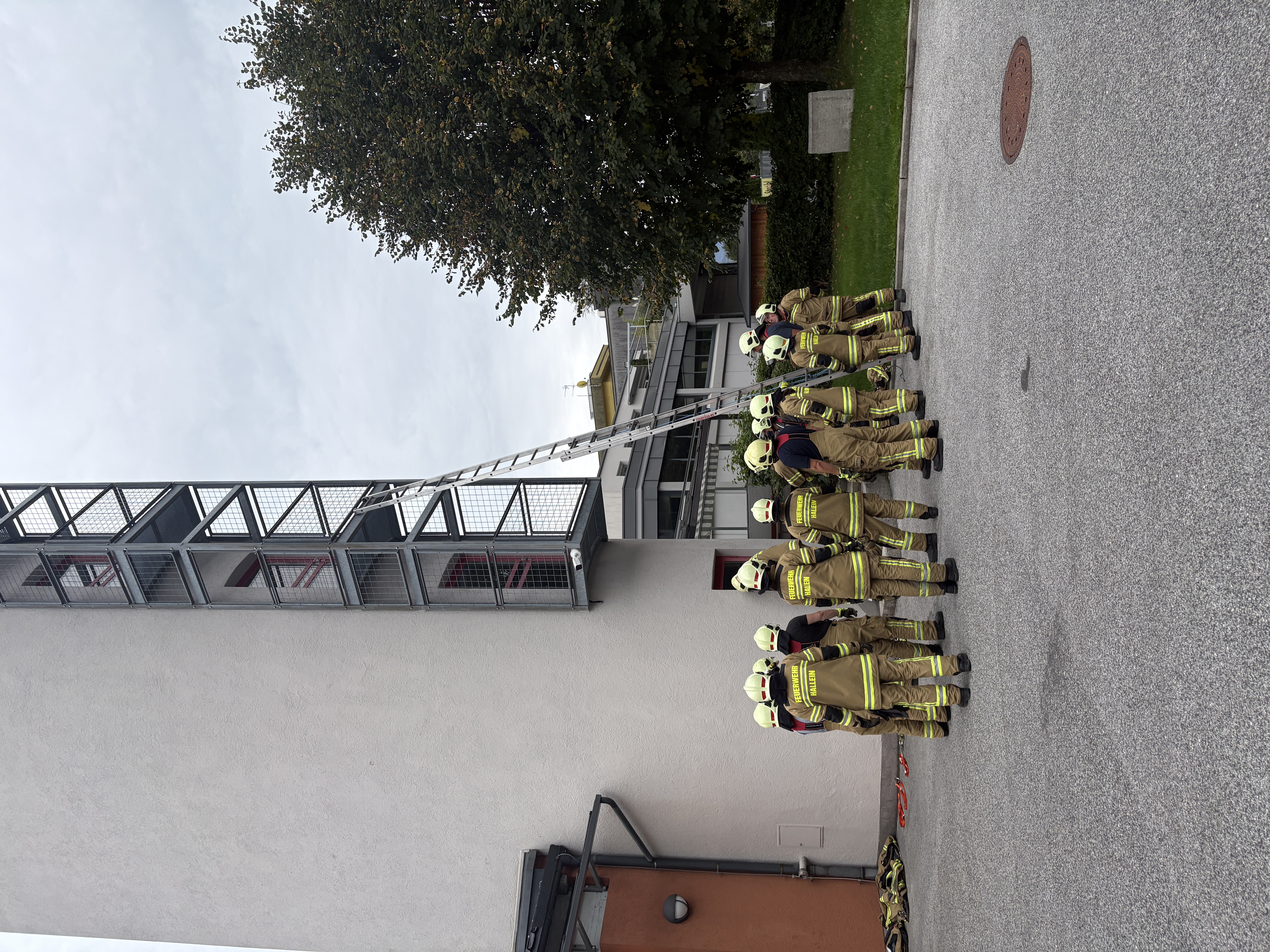 Im Rahmen der wöchentlichen Übung am Donnerstag, den 18. September, wurde das Szenario eines Brandes in einem Einfamilienhaus beübt. Ausgangslage war die Annahme, dass es nach Arbeiten im Heizraum zu einem Brand gekommen war, eine Person vermisst wurde und eine weitere Person durch die Rauchentwicklung eingeschlossen war.