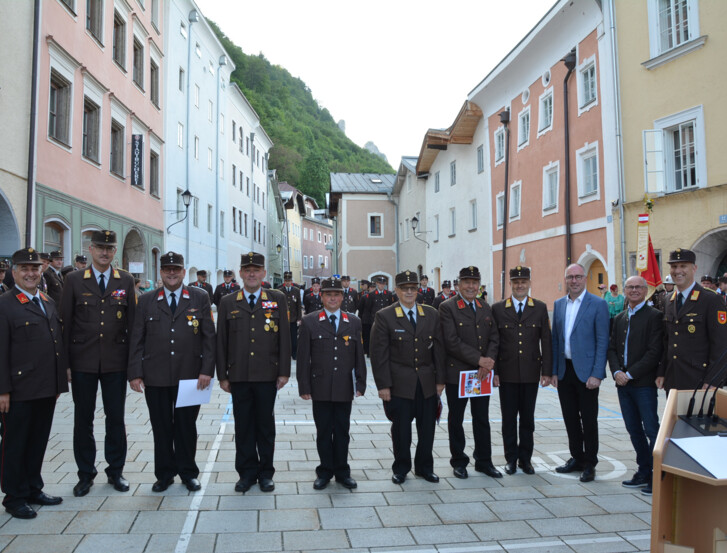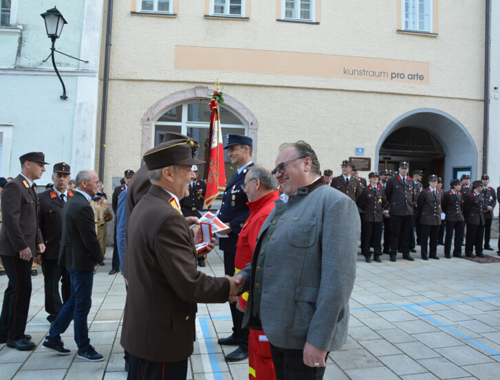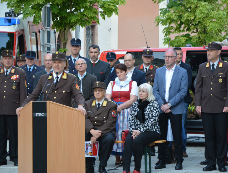 Im Rahmen der Schlussfeier wurden den Bewerberinnen und Bewerber die Abzeichen in den verschiedenen Stufen vom Wissensspiel Bronze bis zum Wissenstest in Gold von der Bezirksführung, angeführt vom Bezirksfeuerwehrkommandanten OBR Markus Kronreif MBA MSD MA, verliehen. Auch etliche Ehrengäste aus der Politik und aus dem Feuerwehrwehrwesen waren bei der Schlussfeier anwesend.