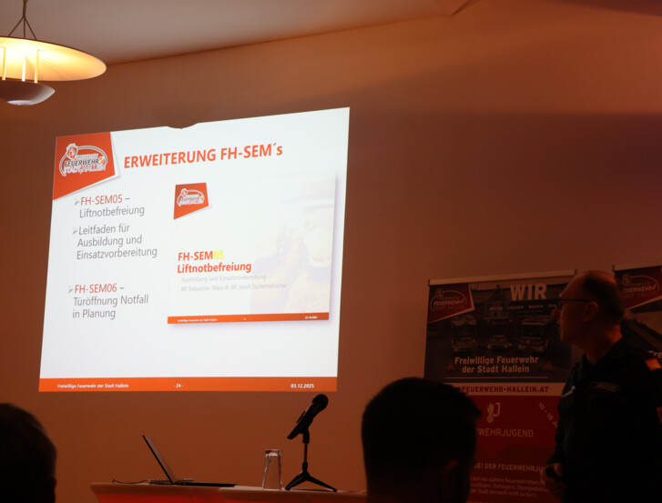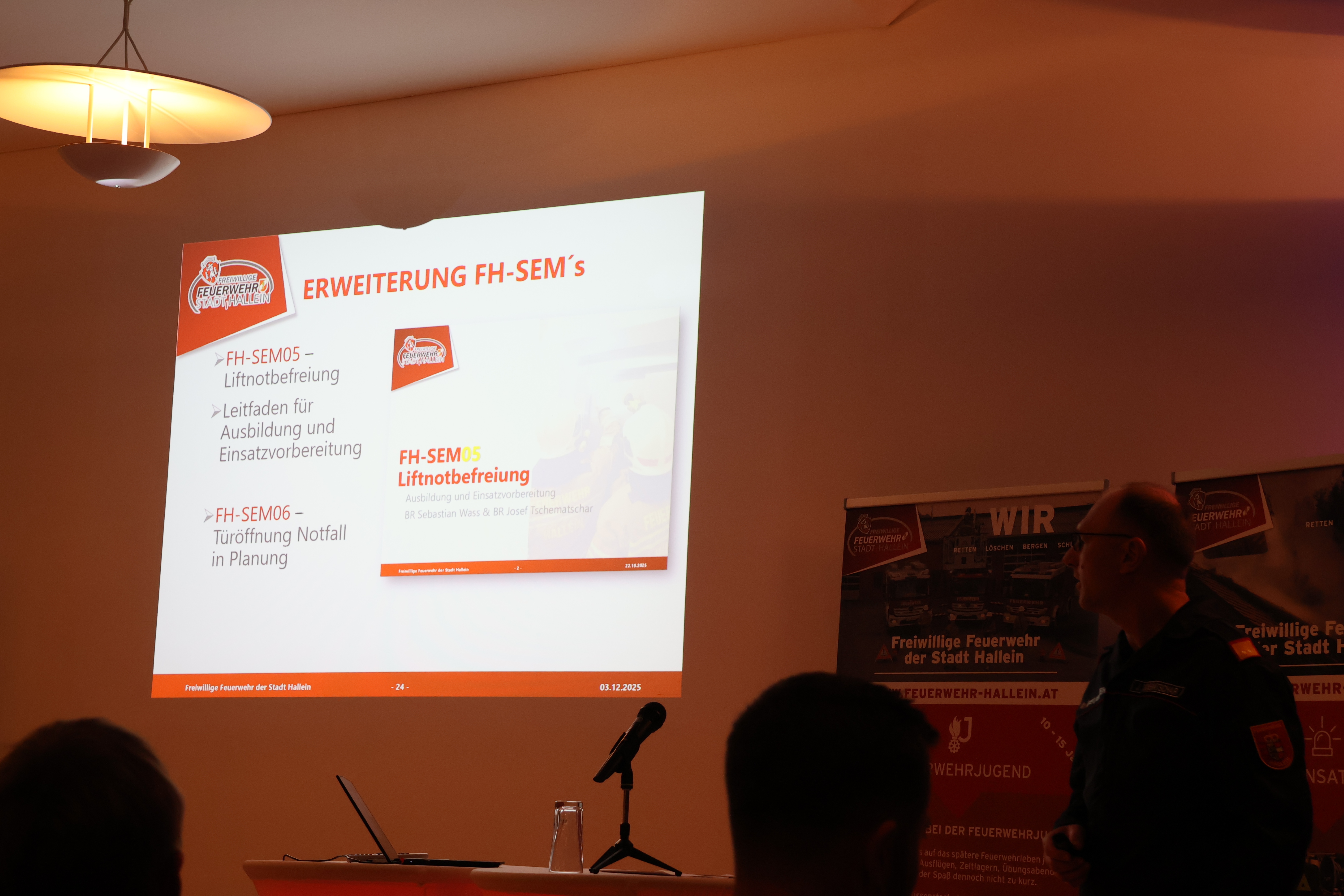 Am 03. Dezember 2025 fand in der Feuerwehr Hallein die letzte Übung des heurigen Jahres statt. Traditionell sind zu diesem Anlass sowohl die aktiven als auch die nichtaktiven Mitglieder der Hauptwache Hallein eingeladen. Besonders gefreut hat uns der Besuch unseres Bürgermeisters Alexander Stangassinger, des Bezirksfeuerwehrkommandanten OBR Ing. Christoph Pongratz sowie des Landesfeuerwehrkommandanten FVPräs Günter Trinker.