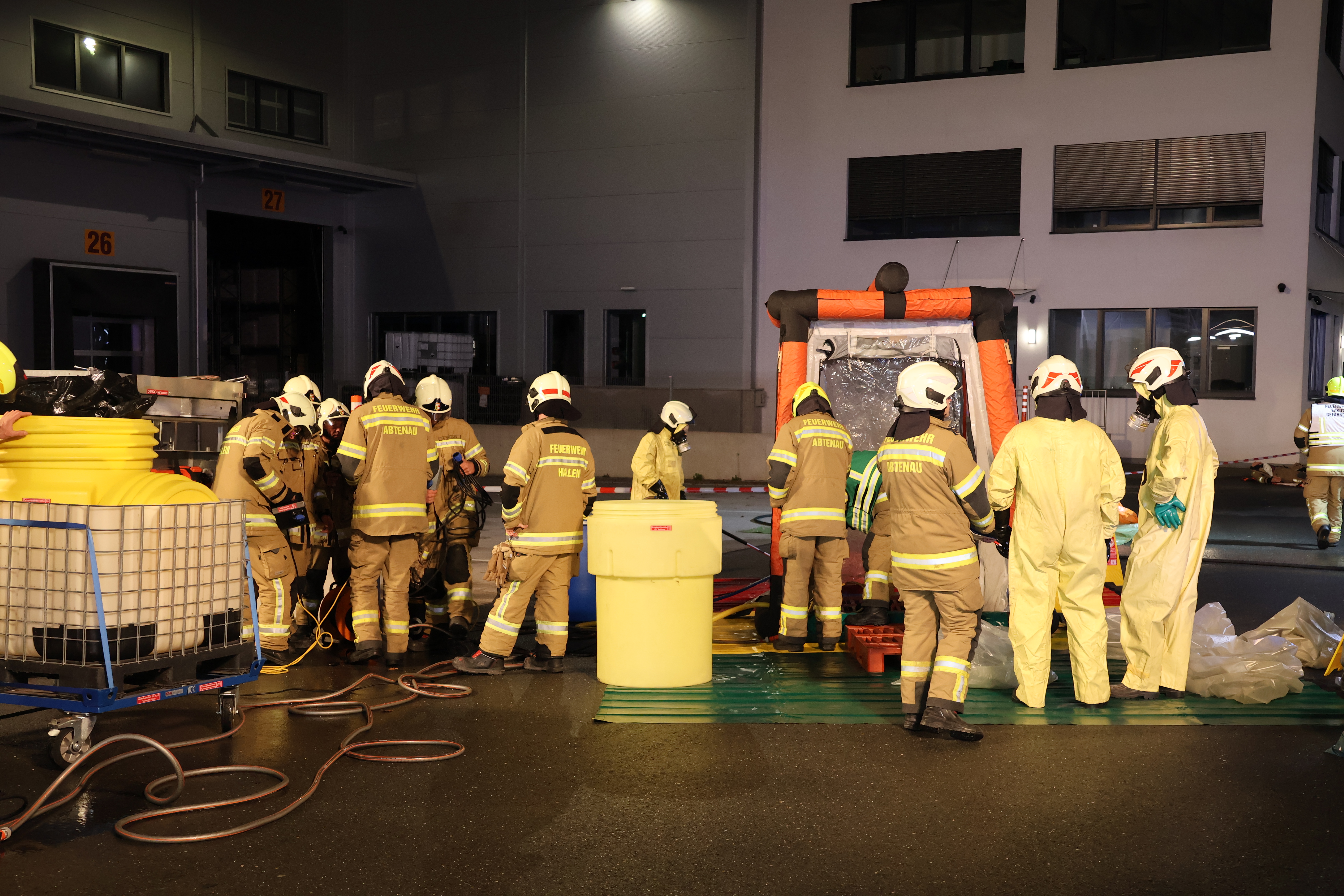 Mehrere Mitarbeiter wurden durch den Vorfall im Gefahrenbereich eingeschlossen, wodurch die Einsatzkräfte vor eine anspruchsvolle und realitätsnahe Lage gestellt wurden.