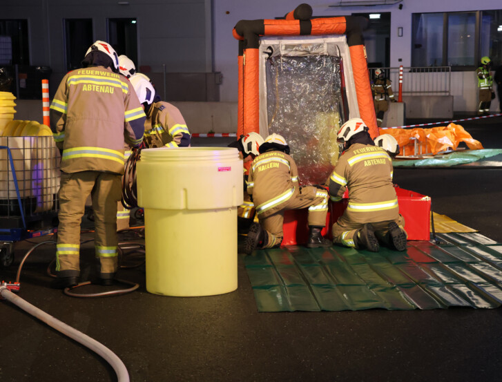 Feuerwehr trainiert Ernstfall gemeinsam mit Gefahrgutzug Tennengau