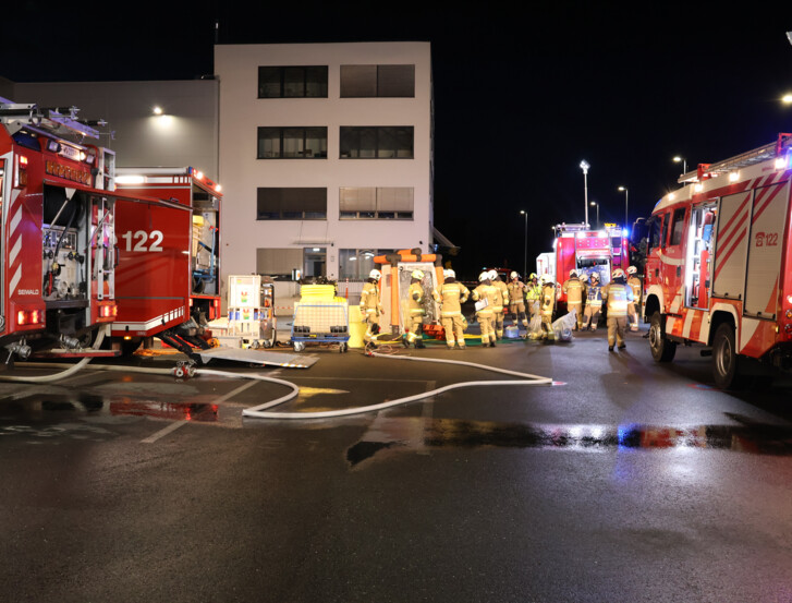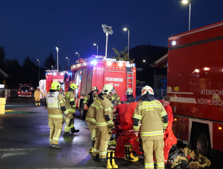 Die Feuerwehr Puch übernahm die Erstmaßnahmen nach der sogenannten GAMS-Regel (Gefahr erkennen – Absperren – Menschenrettung – Spezialkräfte nachfordern). Nach der Erkundung der Lage wurde der Gefahrenbereich großzügig abgesperrt, die Erstversorgung der betroffenen Mitarbeiter eingeleitet und zwei verletzte Personen aus dem Gefahrenbereich gerettet.
